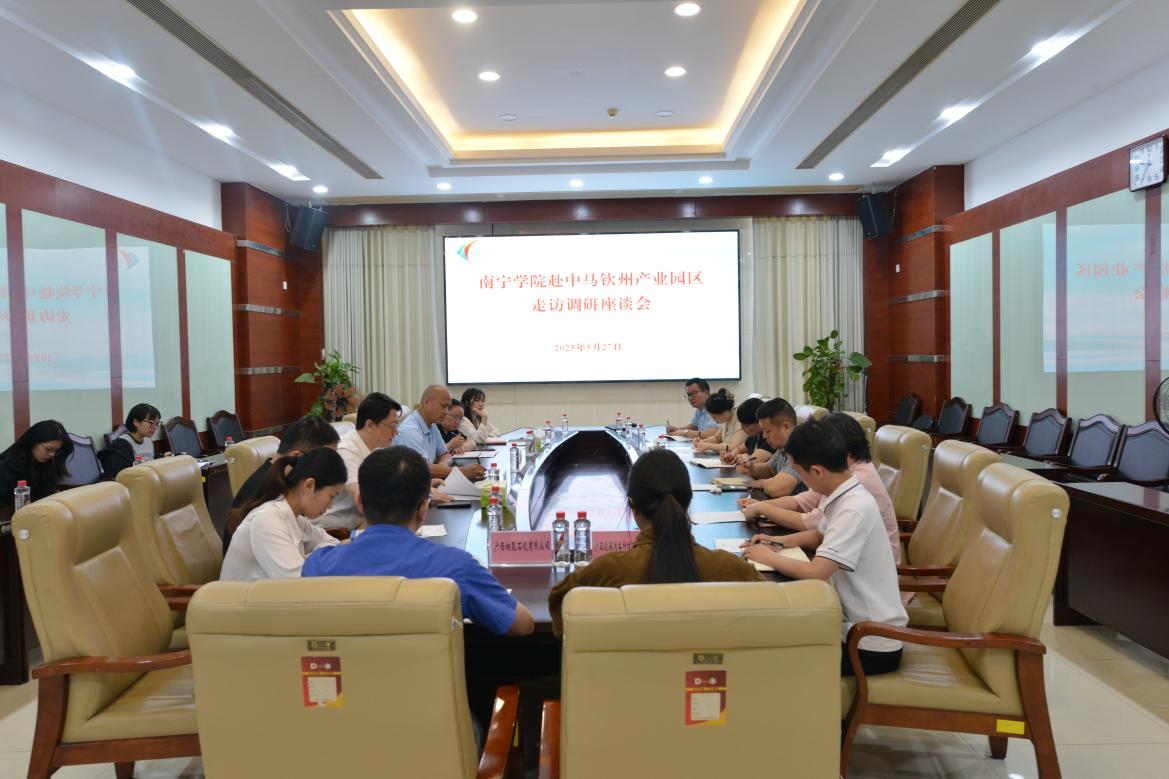 为深化校政企合作、拓宽毕业生就业渠道,2025年5月26日至27日,学校党委副书记、副校长韦粤桂带队赴钦州市开展“访企拓岗促就业”专项行动,学生工作处(就业指导服务中心)副处长(副主任)田爽、数字经济学院经济与金融教研室主任邓林云、艺术与设计学院工艺美术教研室副教授曹琳、智能制造学院学生科科长谈华雄、人工智能学院就业联络员余建明等一行6人参与调研,与钦州市人力资源和社会保障局、中马钦州产业园区及多家企业代表深入交流,并实地考察地方特色产业与高新技术企业。