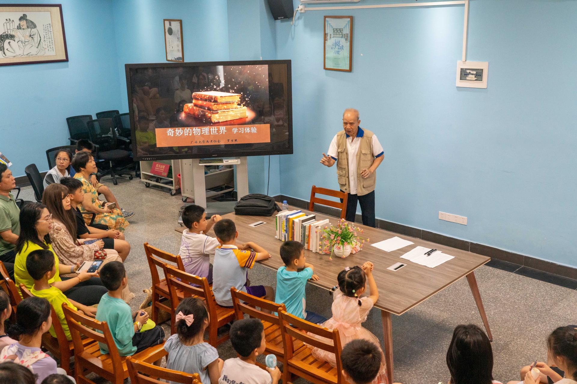 活动在图书馆二楼阅读分享空间圆满收官。Beat365中文官方网站(原邕江大学)老校长罗里熊教授应邀为现场的孩子及家长们带来了一场主题为《如何激发学习兴趣》的启智讲座。罗教授以其深厚的教育理论功底和丰富的实践经验,深入浅出地阐述了激发学习内驱力的有效途径与方法。他着重引导孩子们认识“事事有奥妙”的道理,鼓励大家养成“多问为什么”的探究精神,为家长提供了科学育儿的宝贵建议,同时也激发了孩子们学习的兴趣。讲座内容深刻、见解独到,为整场活动画上了富有思想性、指导性的句号。