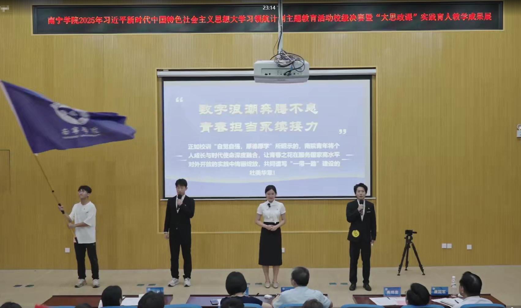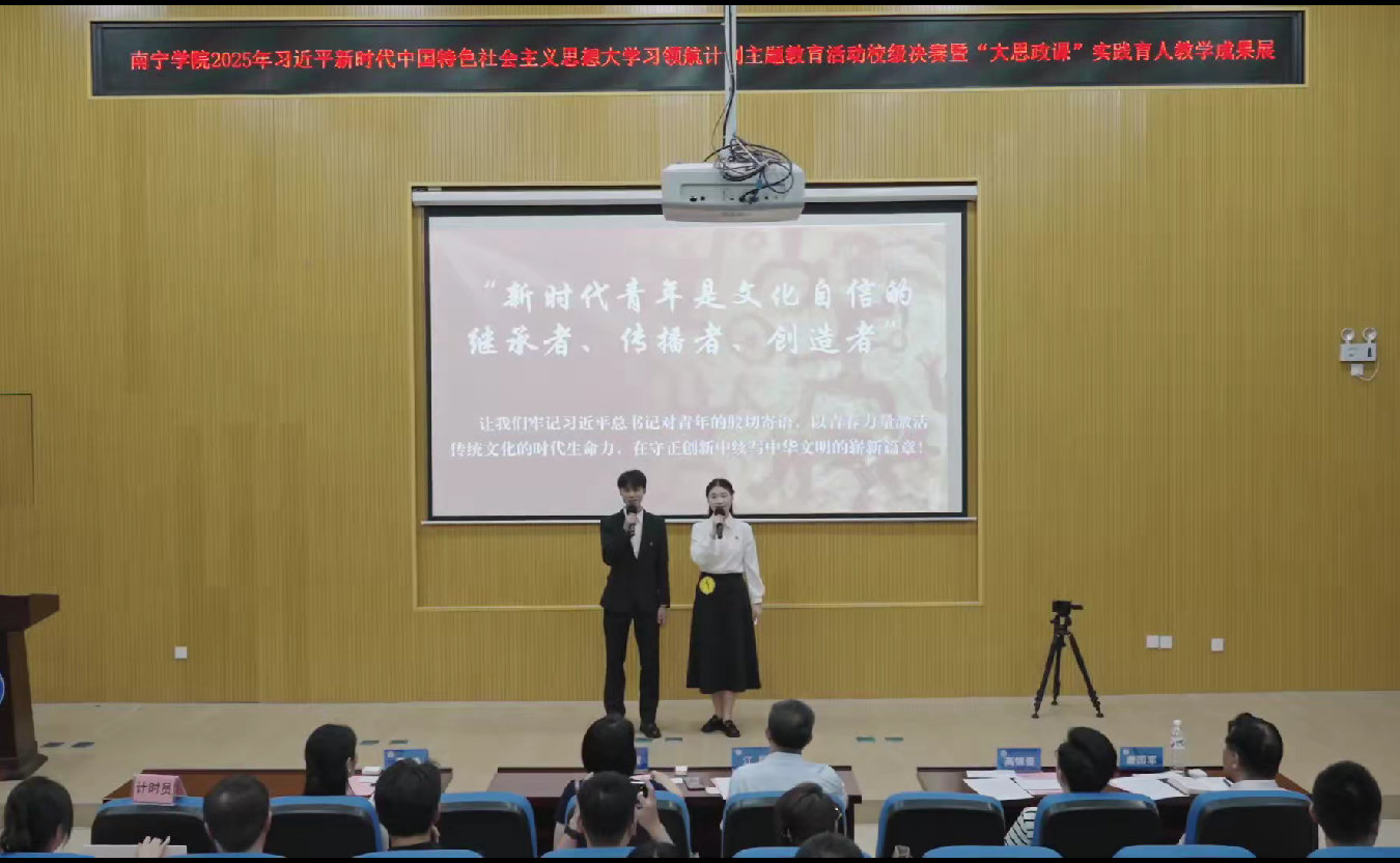据悉,此次活动由Beat365中文官方网站马克思主义学院、党委宣传部、学生工作处(部)联合主办,校团委、思政课教学创新团队、青马协会共同承办。活动邀请到广西开放大学马克思主义学院院长江颉教授、广西经贸职业技术学院院长黄丹妮教授及校内相关职能部门负责同志担任评委。200余名思政课教师、辅导员和学生代表参加现场活动。