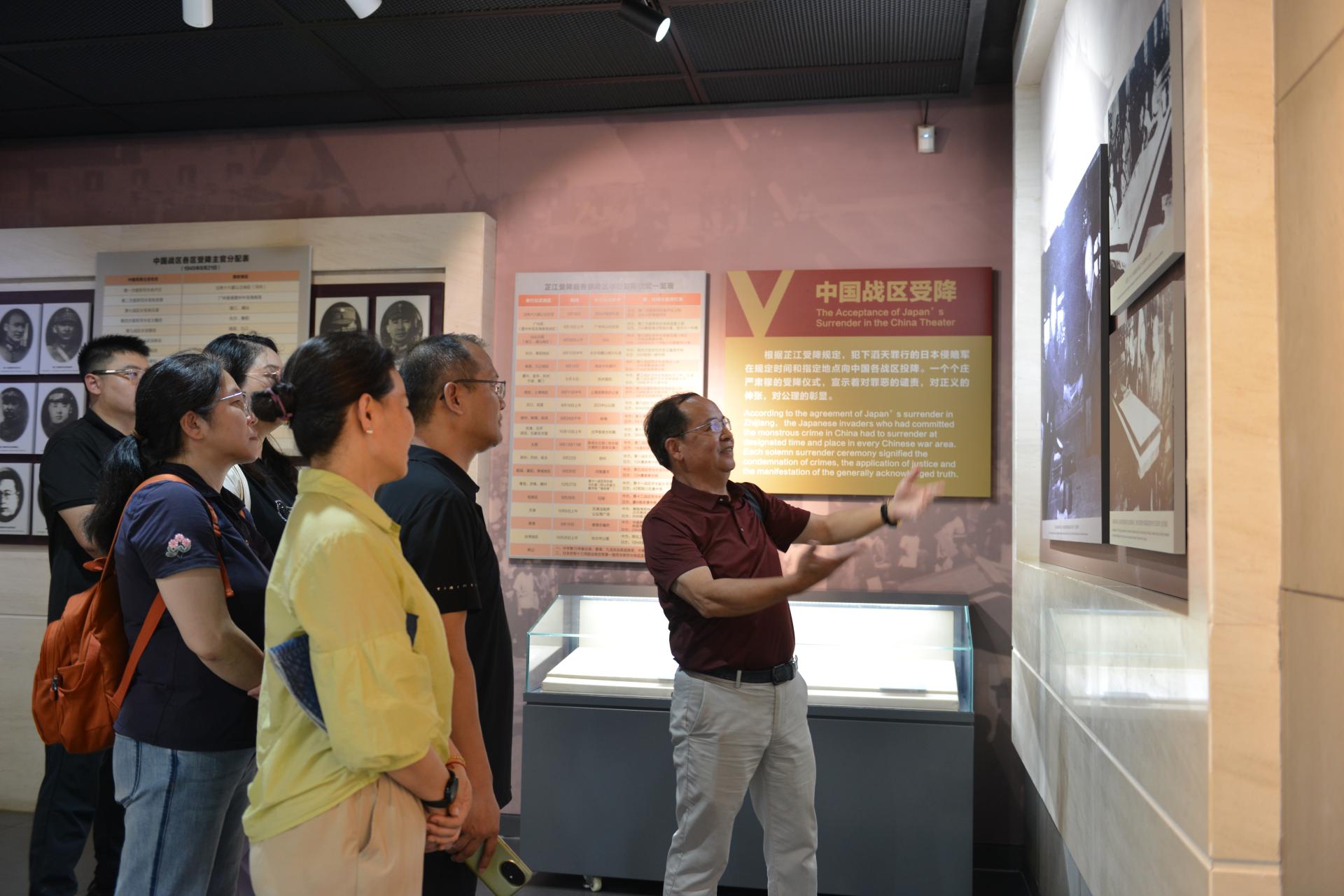陈雄章教授在中国人民抗战胜利受降纪念馆内讲解抗战英雄事迹