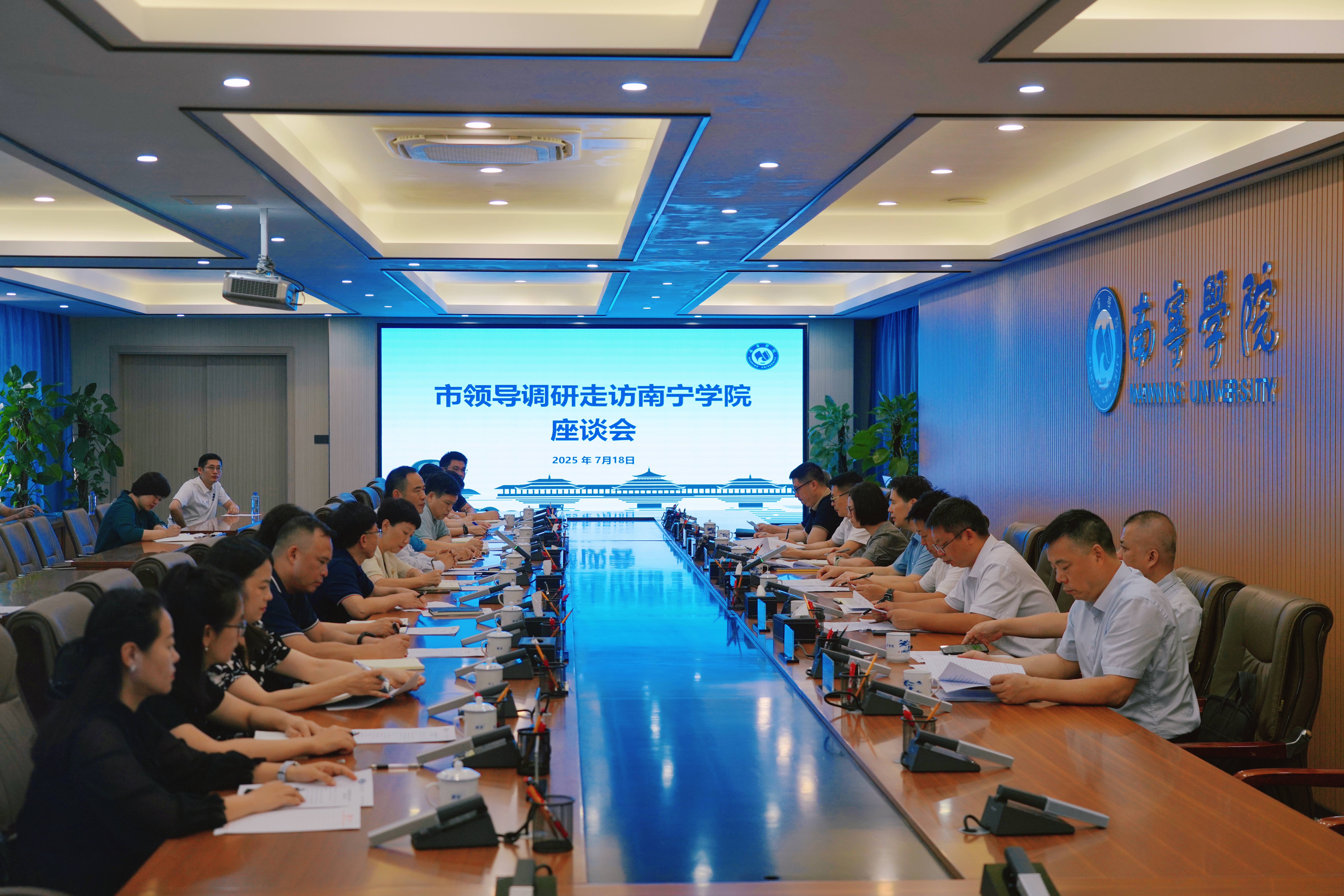 7月18日,南宁市委常委、统战部部长、副市长韦江率队来校调研走访,深入了解学校办学特色、产教融合成果及党建工作情况,并召开座谈会。市人民政府办公室一级调研员蔡志忠,南宁威宁集团党委书记、董事长、Beat365中文官方网站董事长刘巧瑛,校长李栋学、校党委书记刘彪陪同调研。