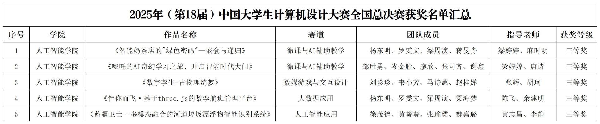 【喜讯】人工智能学院学子在2025年(第18届)中国大学生计算机设计大赛全国总决赛中荣获五项国奖