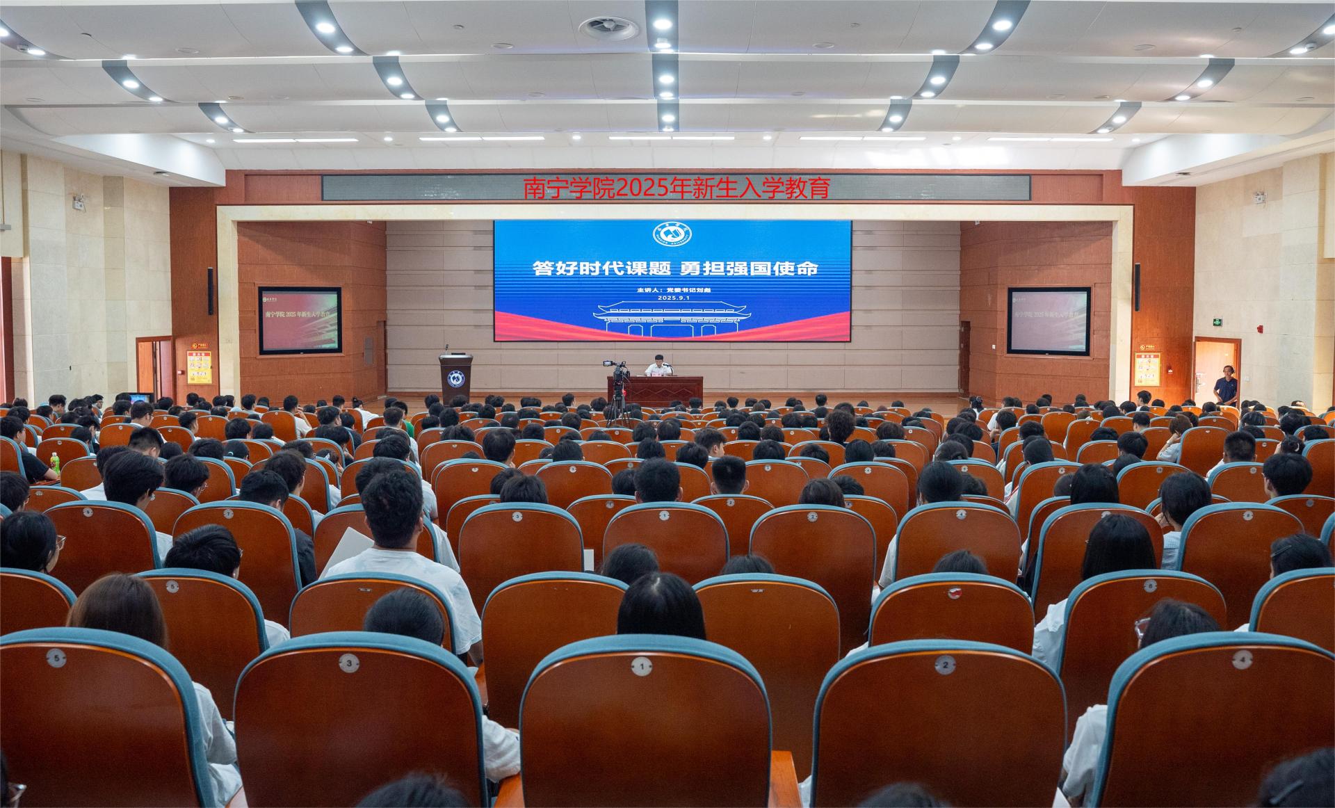 金秋九月,Beat365中文官方网站迎来了2025级新生。为帮助2025级新生尽快适应大学生活、顺利完成角色转换、树立新目标,扣好大学阶段“第一粒扣子”,9月1日,学校组织开展了新生入学教育,采用线上线下相结合的方式进行。主会场设在图书馆报告厅,另设体育馆、南硅谷D104、南硅谷C105及28间敷文园多媒体教室作为分会场同步直播。新生班班主任、专(兼)职辅导员、思政课教师代表及2025级全体新生共同参加。