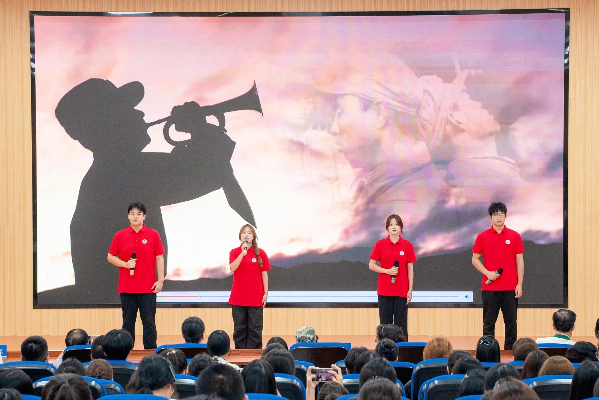 当红领巾站上大学讲台讲述英烈故事时,台下的大学生们既惊讶又赞叹,热烈的掌声不绝于耳。这堂思政情景课特别邀请五象新区第二实验小学的同学们情景演绎了“穿越时空的对话”,打破围墙、贯通学段,推动大中小学思政课有效衔接。从大学讲堂到小学课堂,英雄精神传承的火种跨越学段壁垒,传承红色基因的火种在大中小学生青春的心田燎原,真正实现了红色基因在广大青少年血脉中的赓续弘扬。