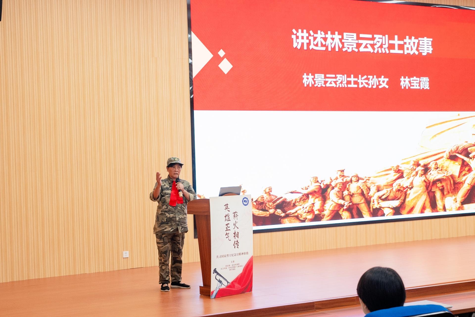 课程打破校园围墙,广泛汇聚社会资源,邀请烈士亲属、英雄后人走进课堂。林景云烈士的长孙女、76岁的林宝霞老人,以铿锵而深情的讲述,带来《林景云最后的党费》这一感人故事。她娓娓道来的真实回忆,让英雄形象穿越时空,鲜活而悲壮。许多学生听到动情处,不禁潸然泪下——英雄精神不再是遥远的历史,而成为直击心灵的信仰力量。思政课从“听”变为“感”,从“知”化为“行”,真正实现了青春与信仰对话,历史与时代共鸣。