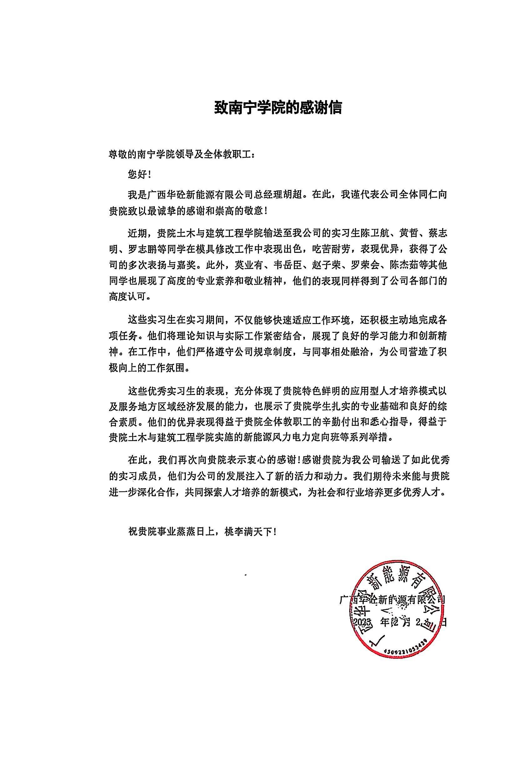 校企“双向奔赴”的背后,是土木与建筑工程学院打破“行业转型—专业转型”困局的决心。如今,这份始于2025年的校企合作和产教融合实践,正加速向“规模效应”升级。今年秋季,土木与建筑工程学院在与原有上海电气研砼(木垒)建筑科技有限公司、上海华砼绿筑新能源有限公司、江苏双为新能源科技有限公司等风电行业龙头企业深入合作基础上,持续拓展企业“朋友圈”,精准对接中咨工程管理咨询有限公司广西分公司、建华建材(广西)有限公司、中汉能源(钦州)有限公司、景泰新能源(上海)有限公司,扩大合作版图,不仅新增实习就业渠道,更推动定向培养从“精准输送”转向集中实习——集中就业赋能。