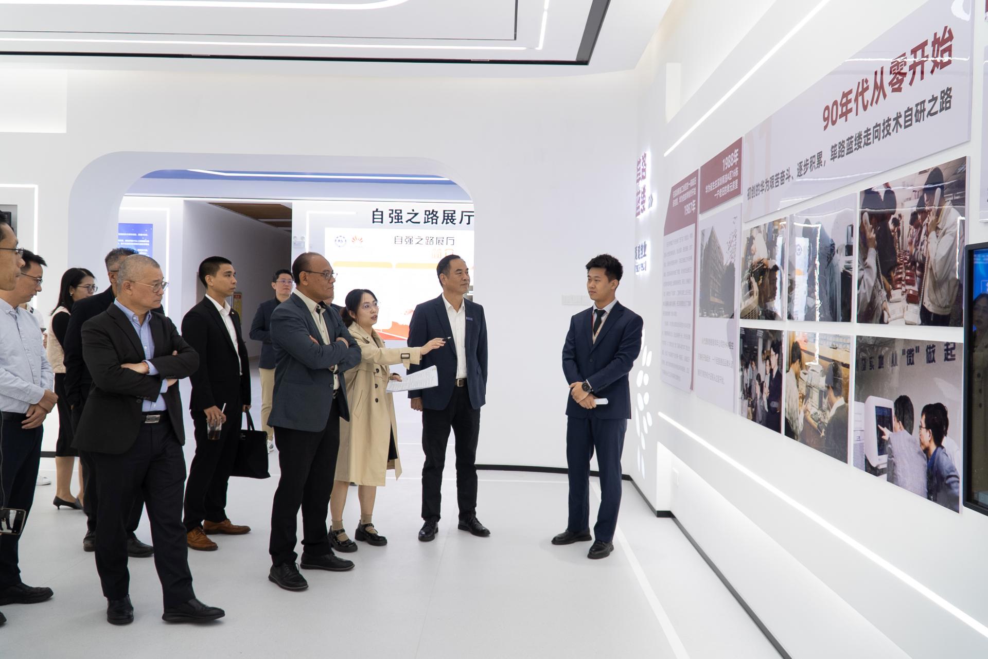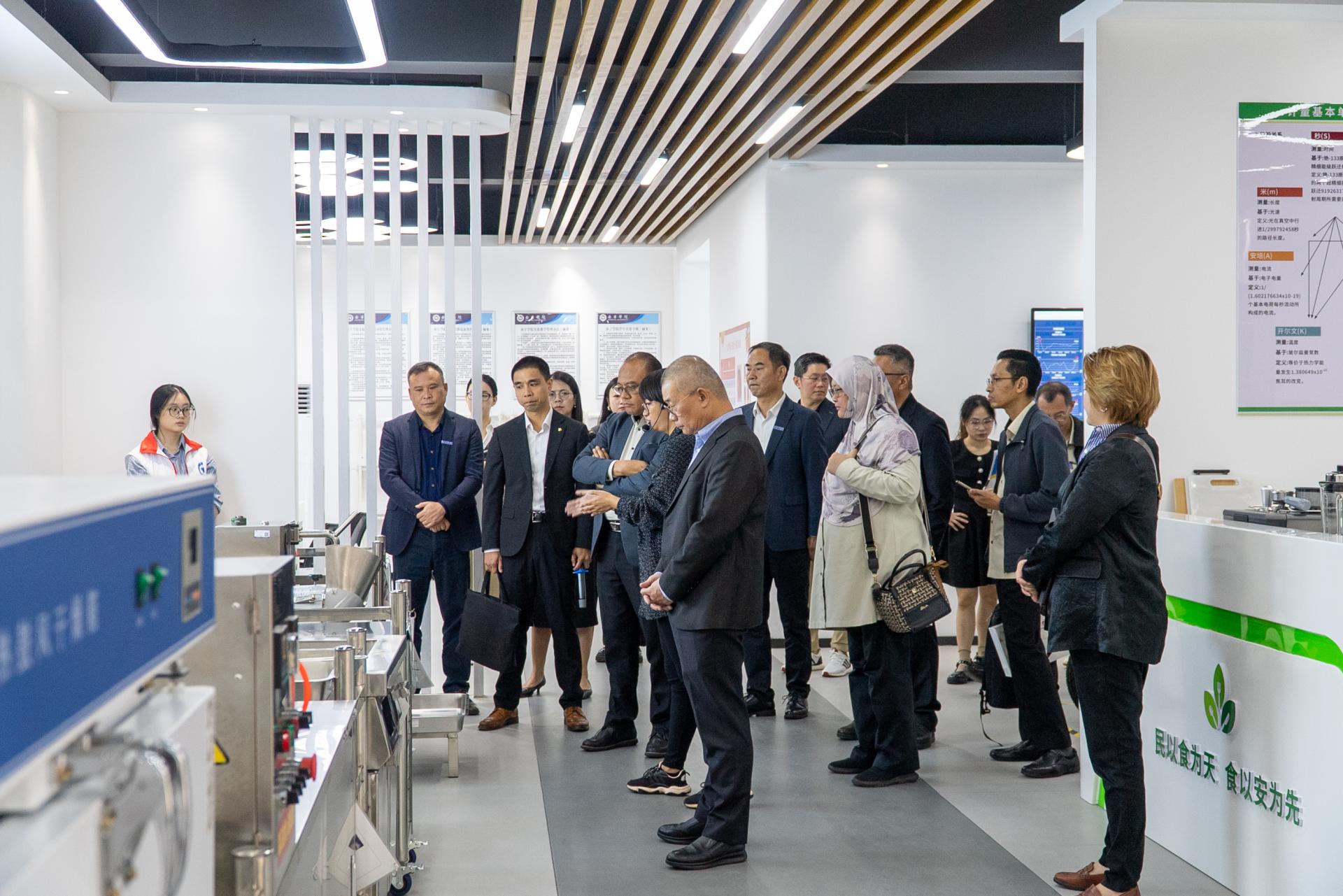 代表团先后参观了学校华为数字技术现代产业学院、广西中国-东盟综合交通国际联合重点实验室、食品质量与安全现代产业学院。参观结束后,双方在行政楼400会议室举行座谈。