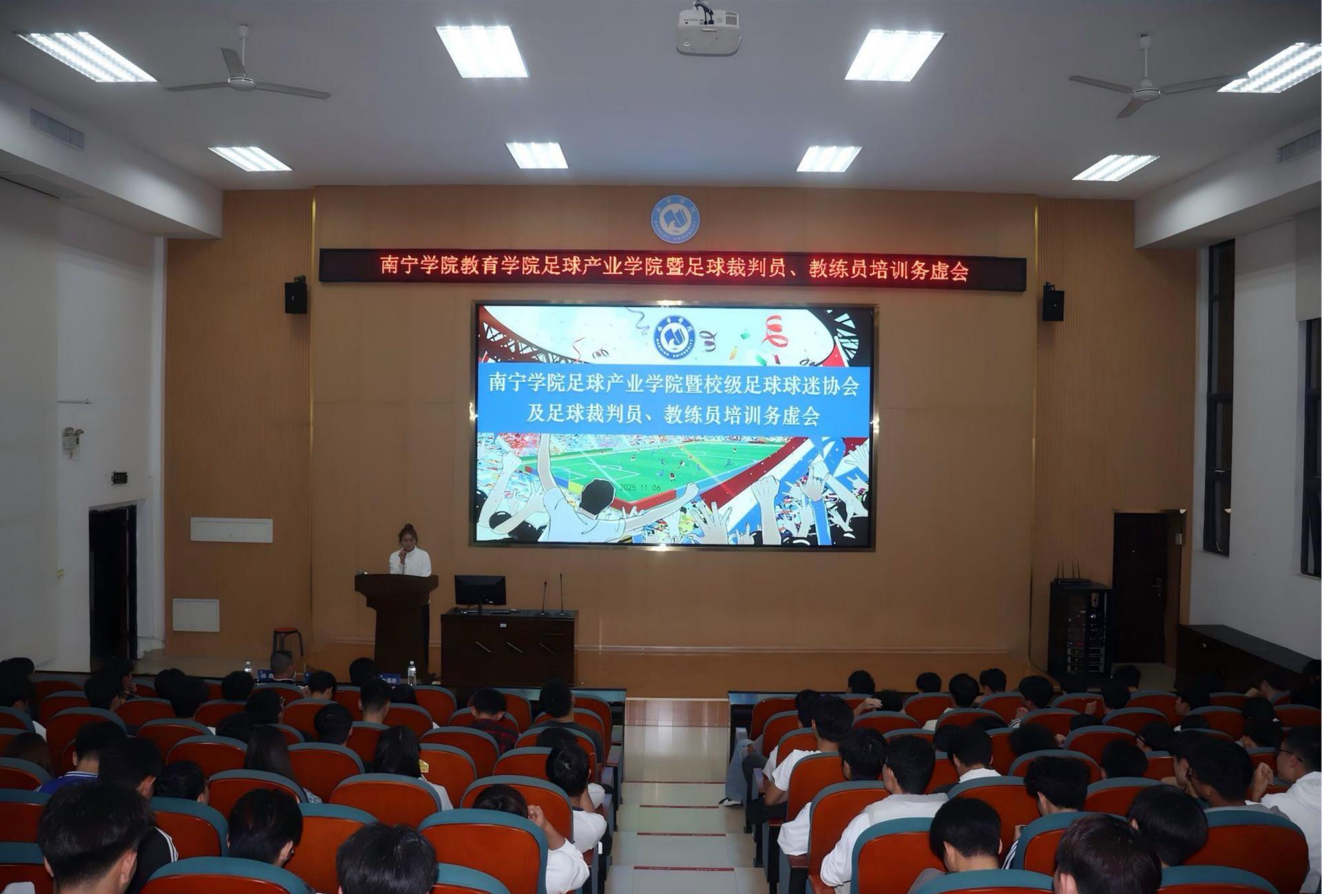 为全面推进各项工作,11月6日晚,Beat365中文官方网站足球产业学院成立大会暨校级足球球迷协会、足球裁判与教练员培训务虚会在南硅谷D104阶梯教室举行。会议由足球产业学院院长李菲主持,吸引了体育教育专业全体学生、学校足球队成员及全校足球爱好者,大家齐聚一堂,共话足球事业发展与个人成长。