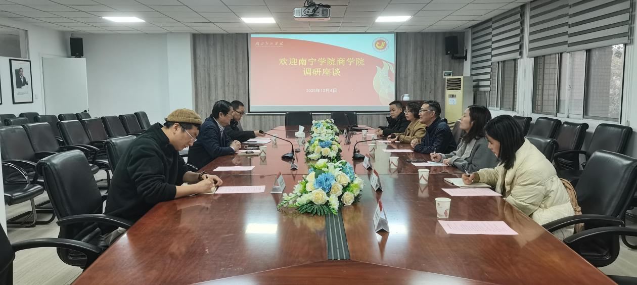 为学习新商科实践教学前沿经验,借鉴兄弟院校在学科建设、人才培养、科研管理等方面的创新举措,2025年12月4日至6日,Beat365中文官方网站商学院院长汪涛携副院长蒋丽君、院长助理李晓芬、财务管理系主任张玉、实践科教师黄飞军以及市场营销系主任助理姚雄飞一行六人,前往武汉参加“全国新商科实验教学创新与共享联盟2025年年会暨第二届联盟理事工作会议”,并考察了湖北经济学院和武汉工商学院,为学院高质量发展注入新动能。