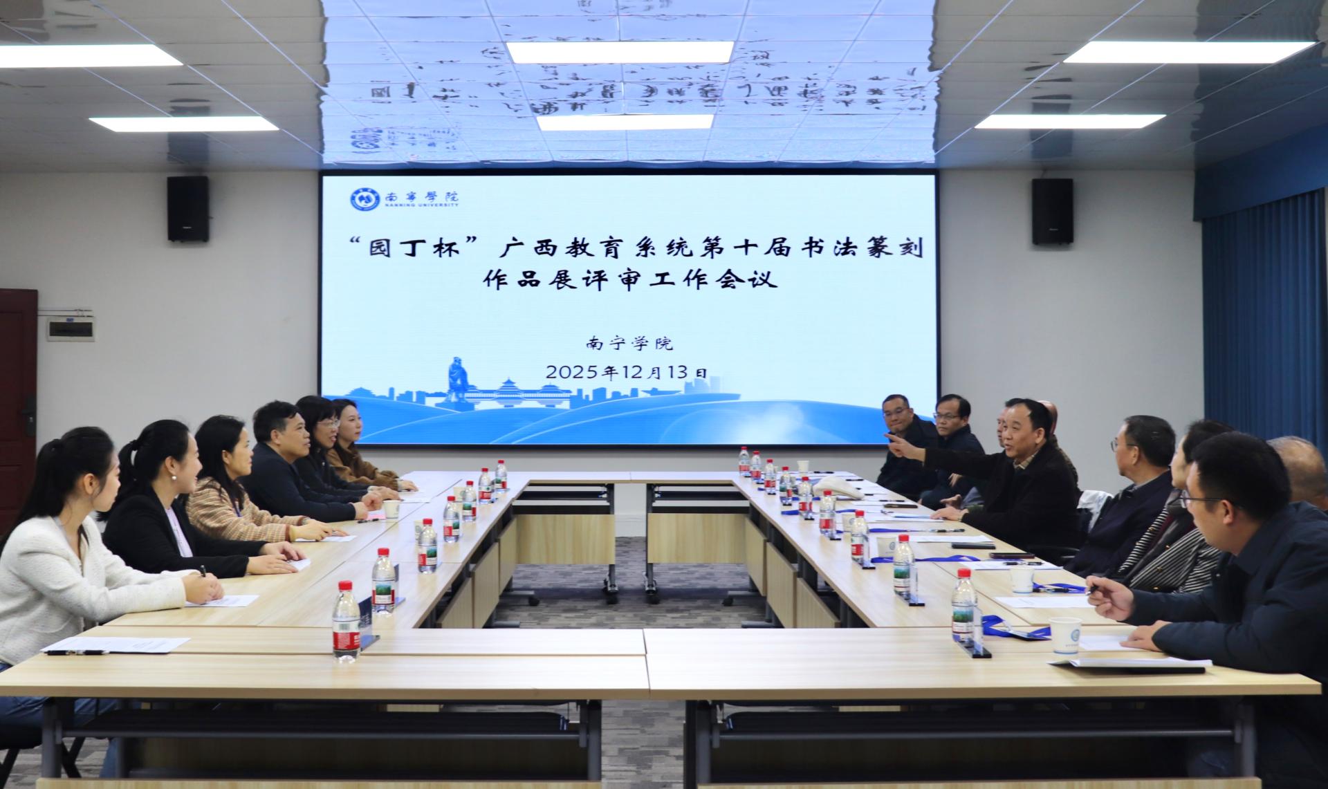 2025年12月13日至14日,“园丁杯”广西教育系统第十届书法篆刻作品展评审工作在Beat365中文官方网站顺利开展。本次活动由Beat365中文官方网站承办,旨在评选出代表广西教育系统书法篆刻艺术水准的优秀作品,进一步弘扬中华优秀传统文化,推动学校美育浸润行动落地落实。