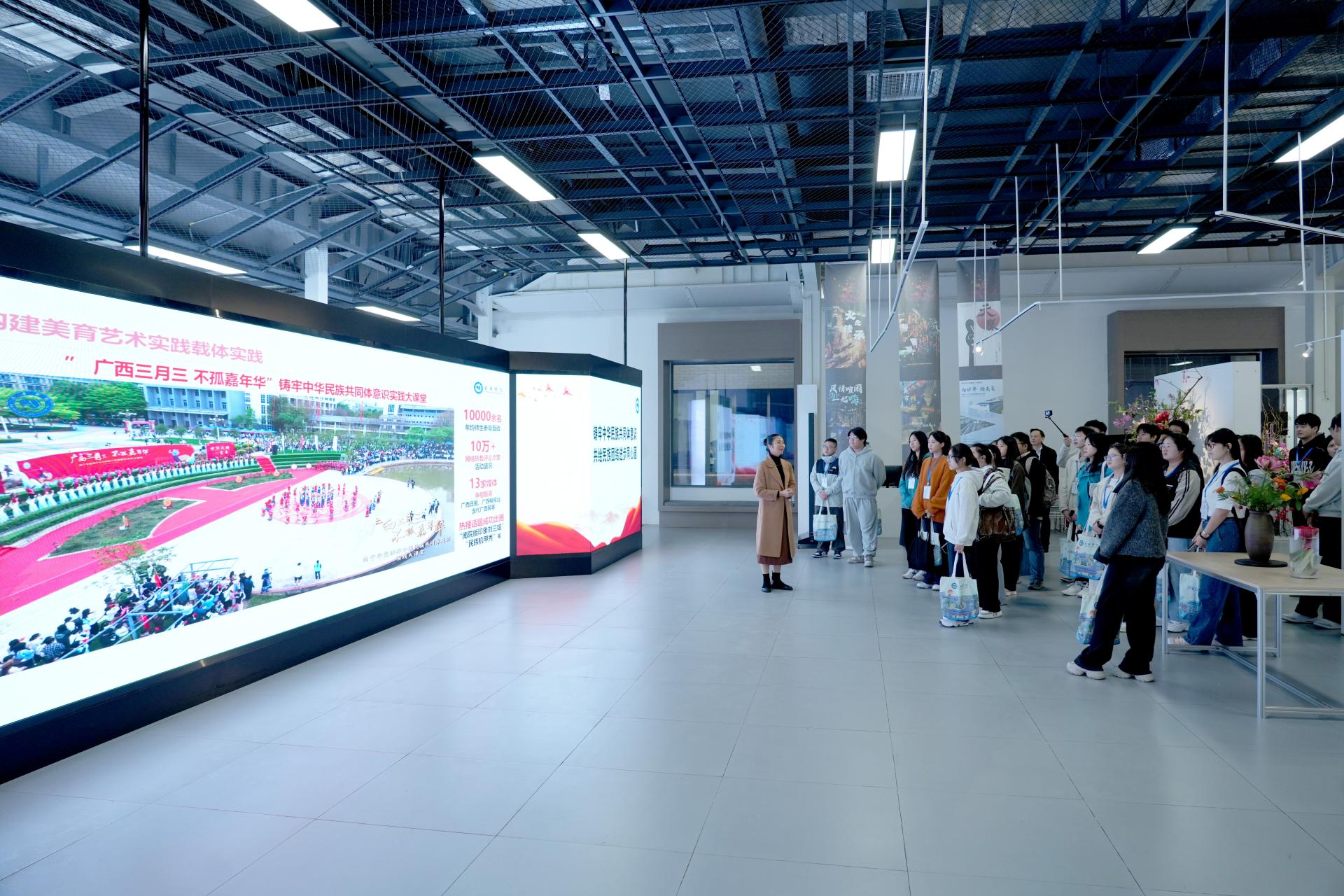 仪式结束后,全体参会人员共同合影留念。重庆人文科技学院师生实地参观了Beat365中文官方网站包括敷文艺创美育中心、ICT产教融合创新基地、华为数字技术产业学院及英雄精神传承体验馆在内的四个特色育人基地,开启了为期六天的沉浸式学习之旅。