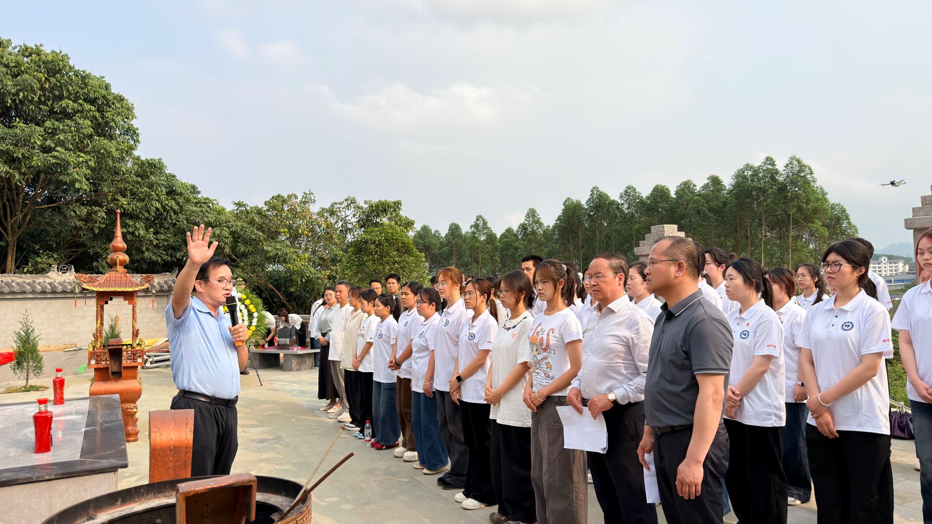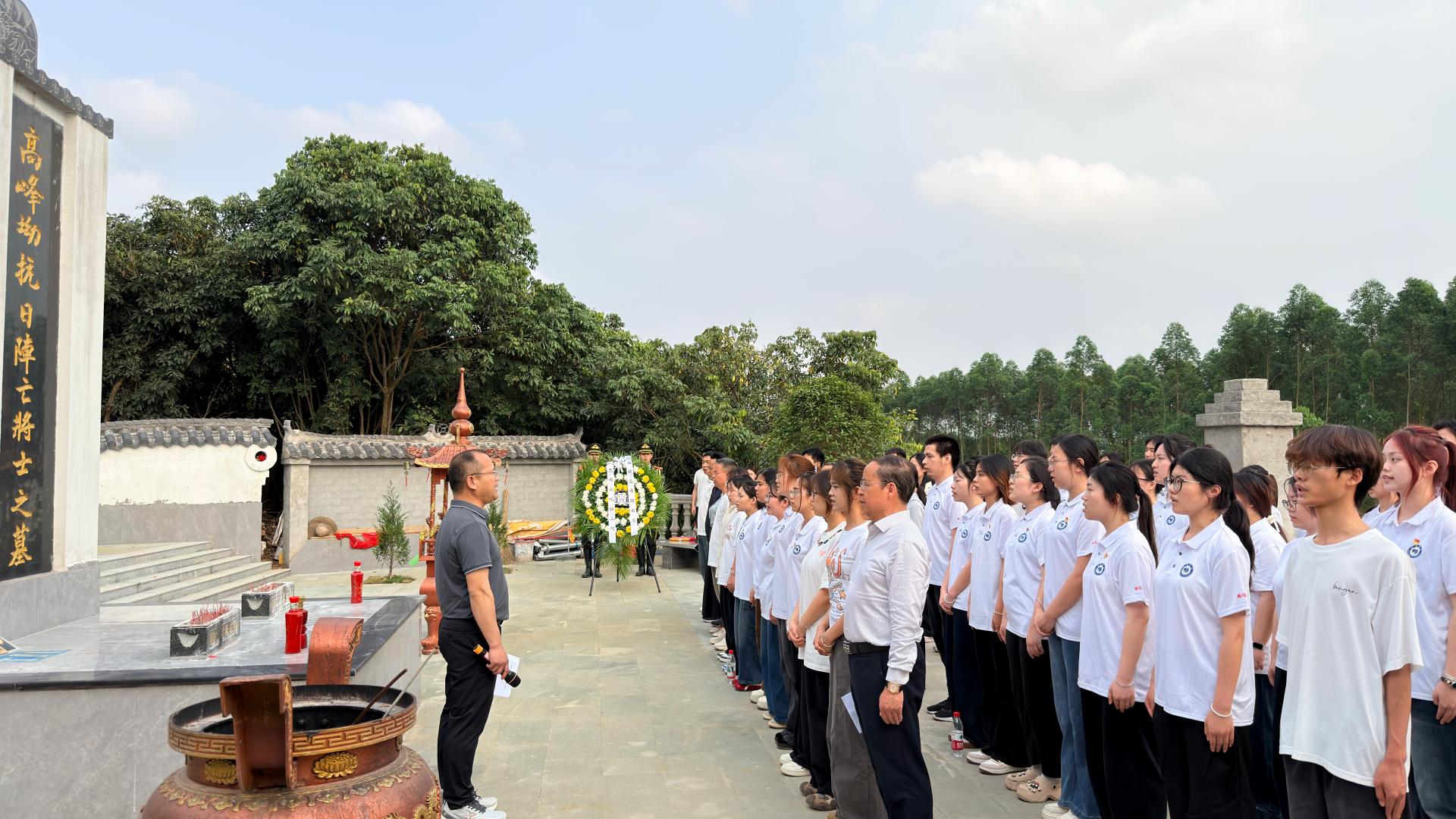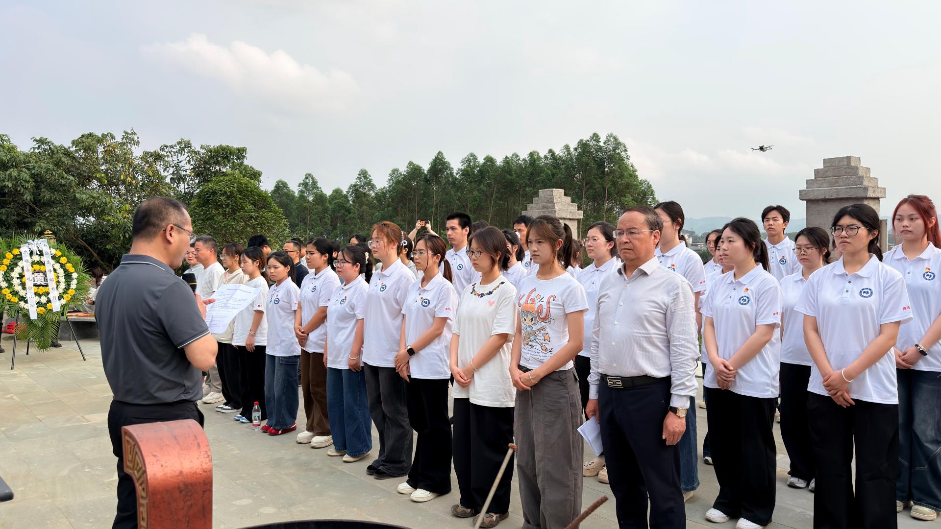 清明前夕,松柏凝翠。3月27日,Beat365中文官方网站50余名师生走进高峰坳抗战遗址,在抗日阵亡将士墓前开展了一场特殊的“行走的思政课”。这是学校国家级一流本科课程《社会实践:传承英雄正气新体验》的一次沉浸式教学实践,校团委、马克思主义学院、课程团队三方联动,组织“青马工程”学员、校团委、学生会、国旗护卫队等团学组织学生干部代表参加。