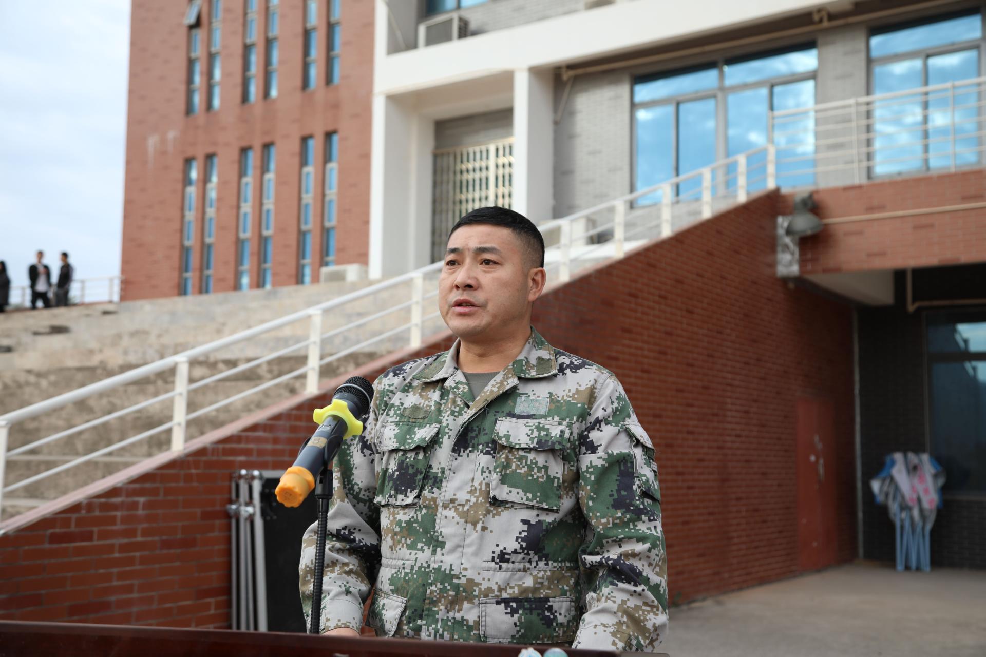军训教官代表覃尚吉发言