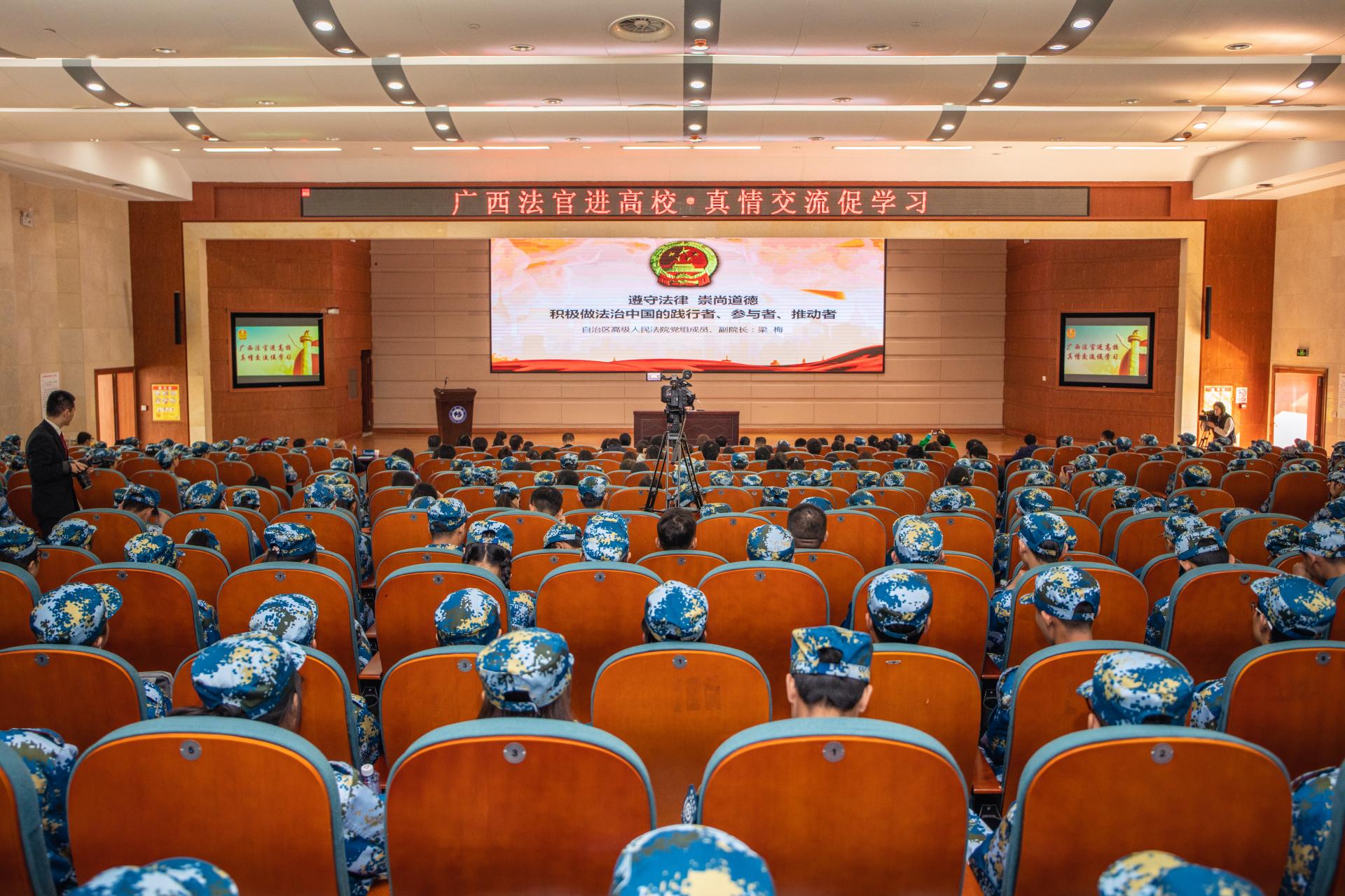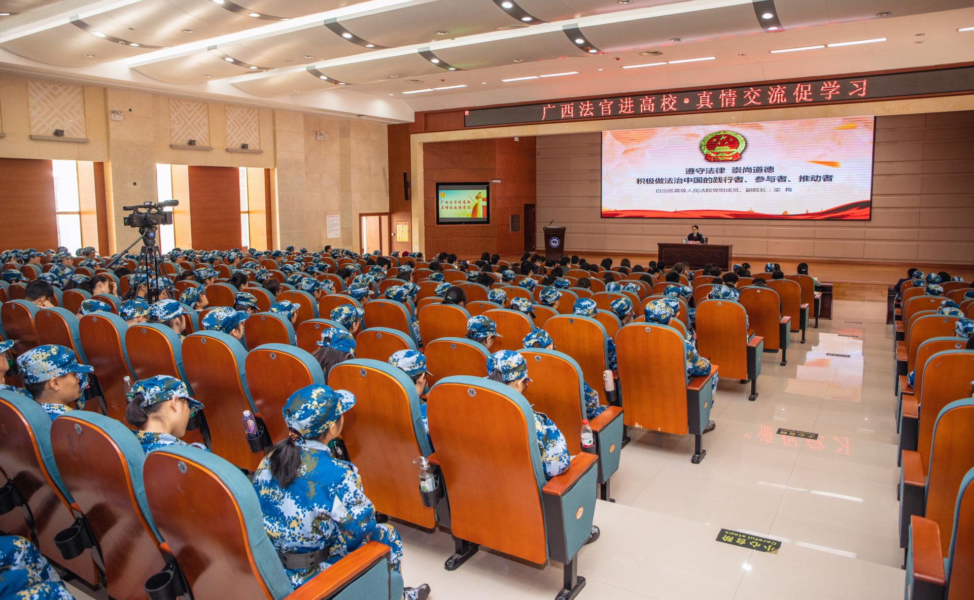 本次活动,自治区高级人民法院向学校赠送了法律书籍,在主题授课及发言结束后还设有互动交流环节。同学们就日常学习生活中如何获取维权及可能发生在校园中的法律案件等问题进行提问。梁梅副院长及法官们为大家一一解答,希望同学们珍惜校园情谊、知法守法,远离“校园欺凌”“校园贷”“套路贷”,勉励同学们树立远大理想,为建设壮美广西、共圆复兴梦奉献青春力量。