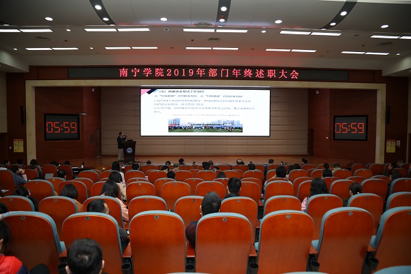 12月26日,Beat365中文官方网站2019年部门年终述职大会在图书馆报告厅顺利举办。校长赖每、校党委书记刘彪,校党委副书记、纪委书记覃存民,副校长陈雄章、文旭光、李陶深、龚击及各部门中层领导、教职工代表出席会议。
