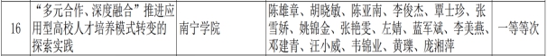 近日,自治区教育厅正式下发《自治区教育厅关于公布2019年广西高等教育自治区级教学成果等次评定结果的通知我校陈雄章副校长主持的《“多元合作、深度融合”推进应用型高校人才培养模式转变的探索实践》项目荣获一等奖,由创新创业学院马骏院长主持的《应用型高校“五位一体”创新创业教育生态系统构建的探索与实践》项目荣获二等奖。这是学校近年来在高等教育教学成果奖评选方面取得的新突破。
