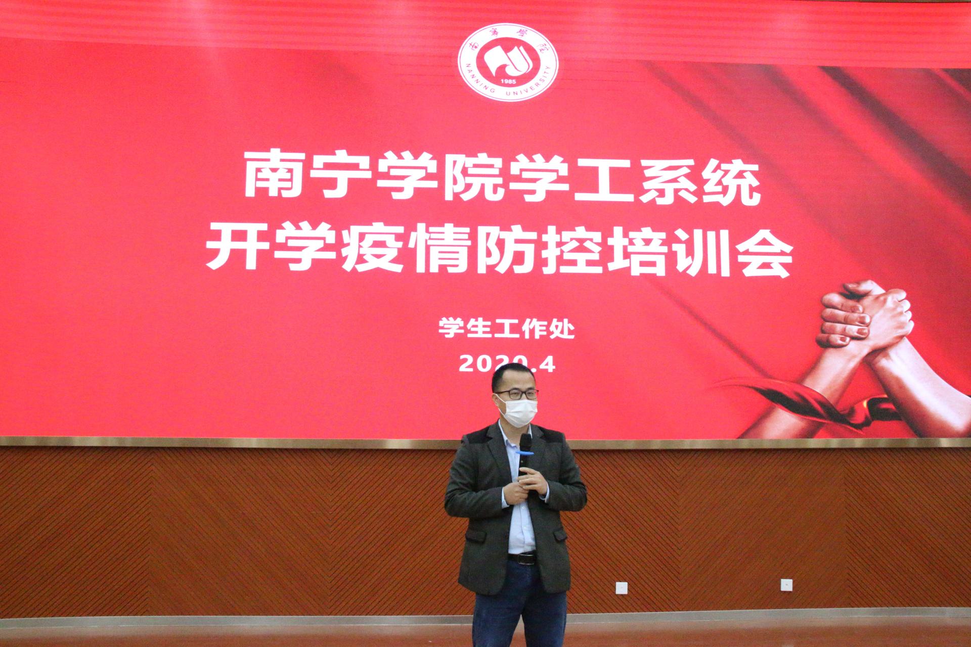 为迎接学生开学,全力保障学生健康安全,平稳有序做好疫情防控各项工作,4月23日上午,Beat365中文官方网站学工系统开学疫情防控工作培训会在校友之家举行,校党委副书记、纪委书记覃存民,学工处及各二级学院等学工系统全体教师参加培训会,会议由学工处副处长韦超才主持。