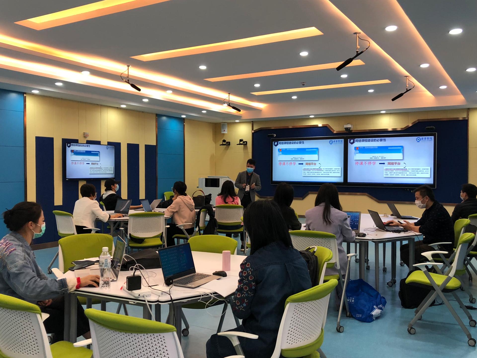 为全力保障线上教学的正常开展,教务处教师发展中心迅速响应,多举措并进,全力护航线上教学。一方面,积极在网络上搜罗信息化教学能力提升相关的网络学习资源,提供给教师们。另一方面,围绕“服务和保障线上教学顺利实施”这一宗旨,先后组织了“线上教学研讨会” “教学技能工作坊” “线上教学技能工作坊”等一系列培训活动,截至4月底,教务处教师发展中心组织了共10期工作坊培训班,共339人次参加。这一系列及时且形式多样的培训活动,在疫情期间持续掀起学习热情,被教师们称为“及时雨”,高效且有针对性地帮助教师们解决线上教学的技术难题,实现线上线下教学的有效衔接。