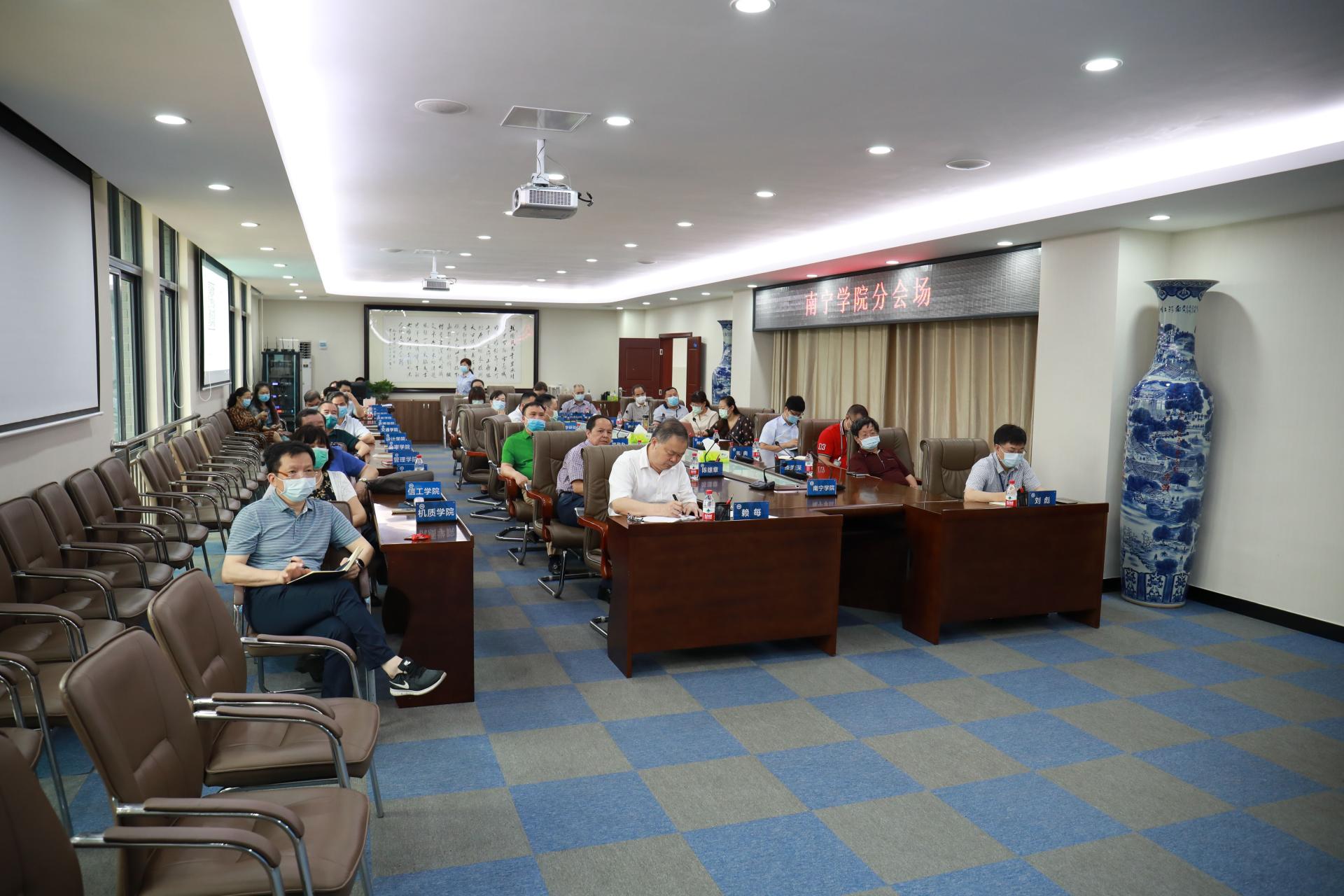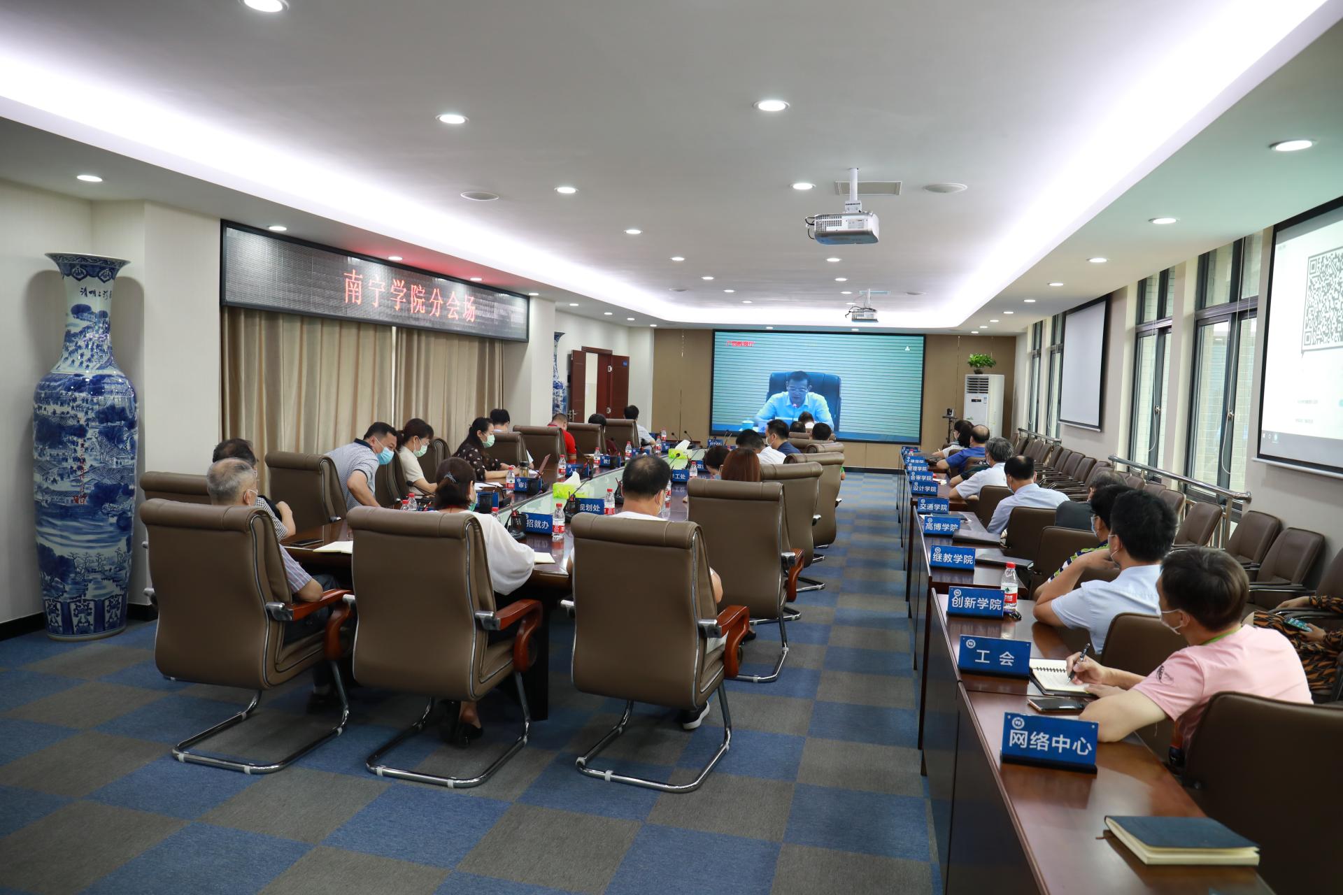 522日上午,全区各级各类学校和托幼机构新冠肺炎疫情防控工作视频会议在南宁召开,自治区人民政府副主席黄俊华,自治区党委教育工委书记、教育厅厅长唐咸仅出席会议。学校在行政楼322视频会议室设立分会场,校长赖每、党委书记刘彪,副校长陈雄章、李陶深、龚击,财务总监韦典及学校新冠肺炎疫情防控工作领导小组全体成员参加会议。