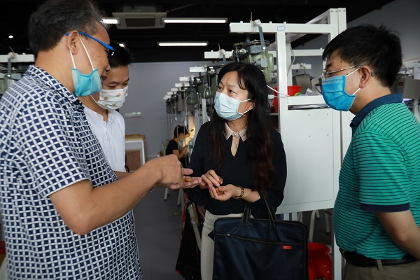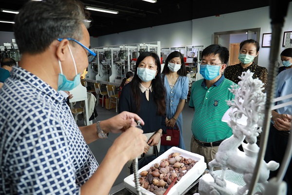调研组首先在学校党委书记刘彪、人事处处长王静静的陪同下参观了艺术设计学院大师工作室,了解了学校引进行业大师、创新人才培养模式、探索教育教学改革等方面的情况,对学校以大师工坊和行业协同创新基地为实践教学平台培养学生现代工匠精神的办学思路和“现代师徒制”带徒传艺的教学模式给予充分肯定。