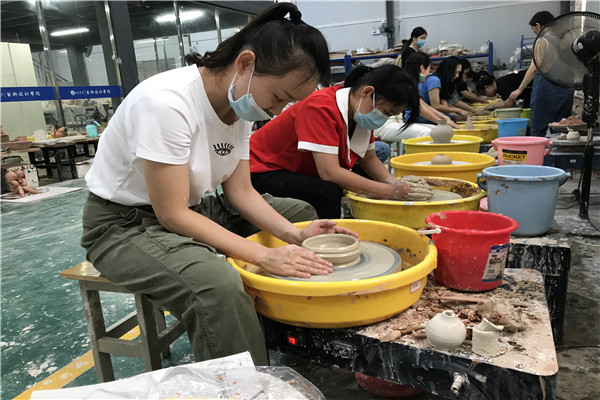 本期辅导员活动日活动分为素质拓展和理论学习两个模块上午的素质拓展活动包括参观大师工作坊和体验陶艺制作。全体辅导员老师参观了学校大师的雕刻、油画、陶艺等作品,近距离感受大师的风采。在体验陶艺制作环节,辅导员在工作人员的指导下,反复的摞泥、拉坯,体验陶艺艺术的同时,制作出了人生第一件陶艺作品