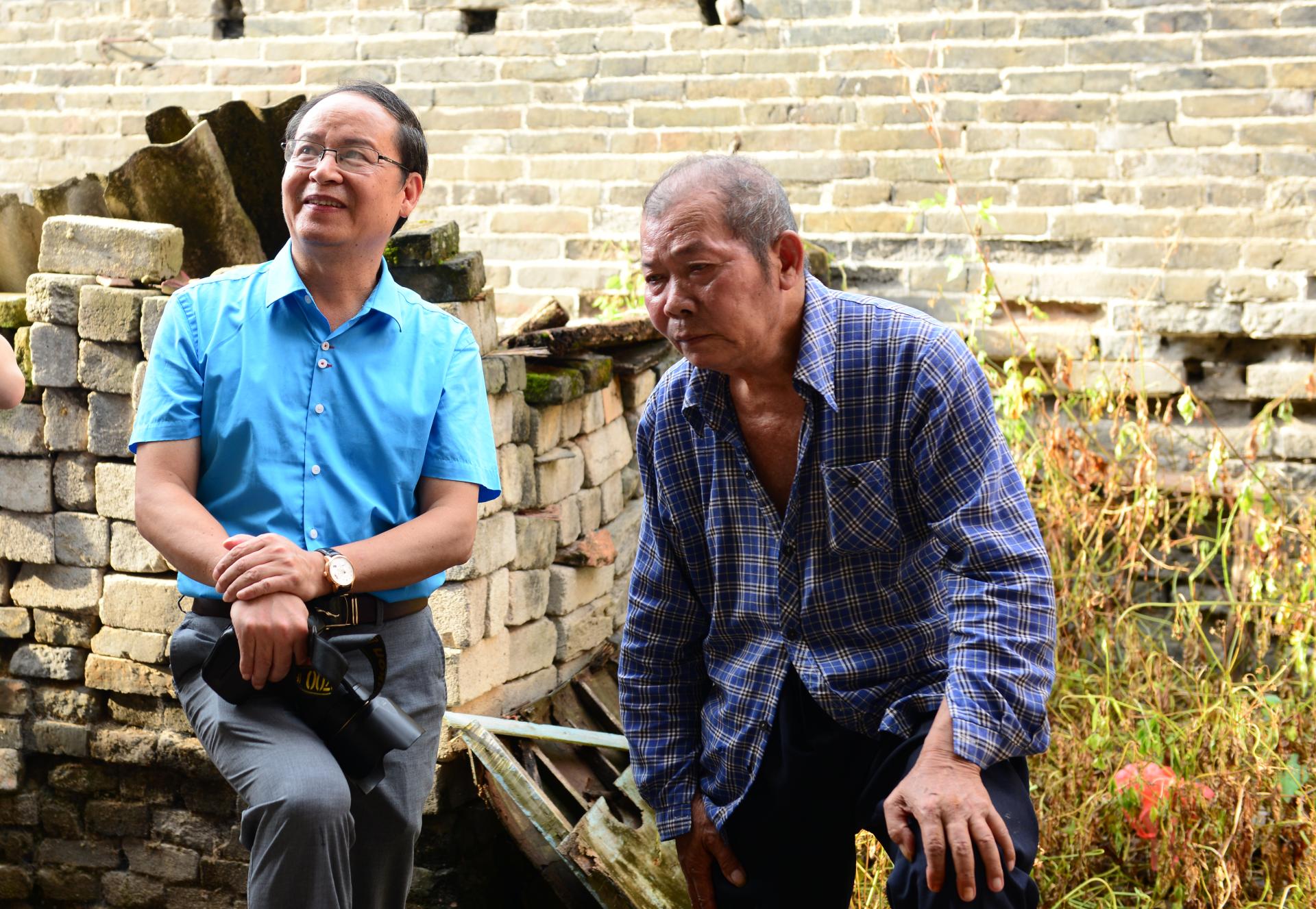 调研组与宣村老村长交谈,了解当地农业发展情况