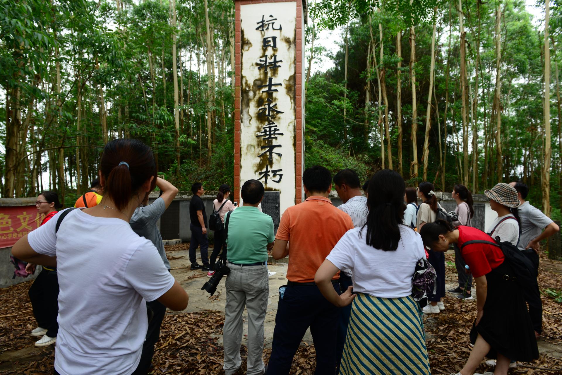 留寺村是一个具有爱国主义光荣传统的村庄,是抗日战争昆仑关战役战地医院遗址,1928年中共广西特委雷经天同志以特派员的身份到宾阳指导建立党的组织,该村村民龙炳煌、黄善才为全国解放事业献出自己的生命,分别被国家追认为“革命烈士”,修建烈士墓。该村为昆仑关战役后在村里治伤,后被日军扫荡杀害的67名无名抗日壮士修坟立碑;为昆仑关战役后宾阳会战在甘棠阻击日军的国军76师228团3营7连上尉连长陈金亭单独修了一座墓地,并一直不断在努力寻找陈金亭在湖南的亲属;还修建了一座占地有半亩左右,高达30多米的“抗日壮士永垂不朽”纪念碑。由于农历五月十三是这些无名壮士下葬的日子,留寺村群众每年都习惯进行缅怀纪念活动,少则六七百人,多则几千人前来参加祭拜活动。留寺村抗日战地医院,抗日壮士墓,抗日壮士纪念碑和抗日战壕遗迹遗址,长期以来已经成为缅怀先烈进行爱国主义教育的重要场所。(产学研处供稿 文/姚锦金 图/陈雄章、蓝军斌、蓝志军、宋景弘)