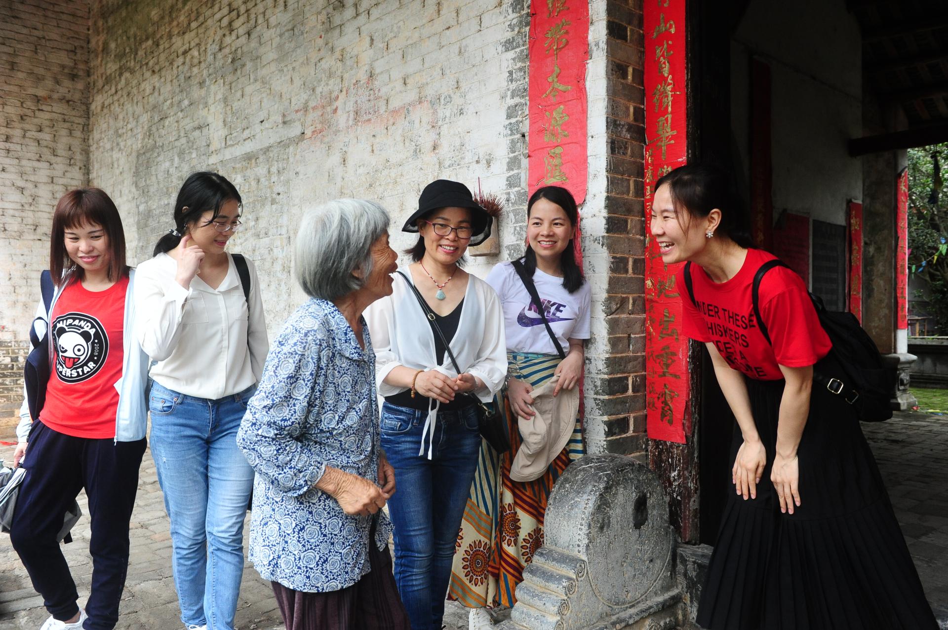 在陈氏宗祠与管理员老奶奶亲切交谈