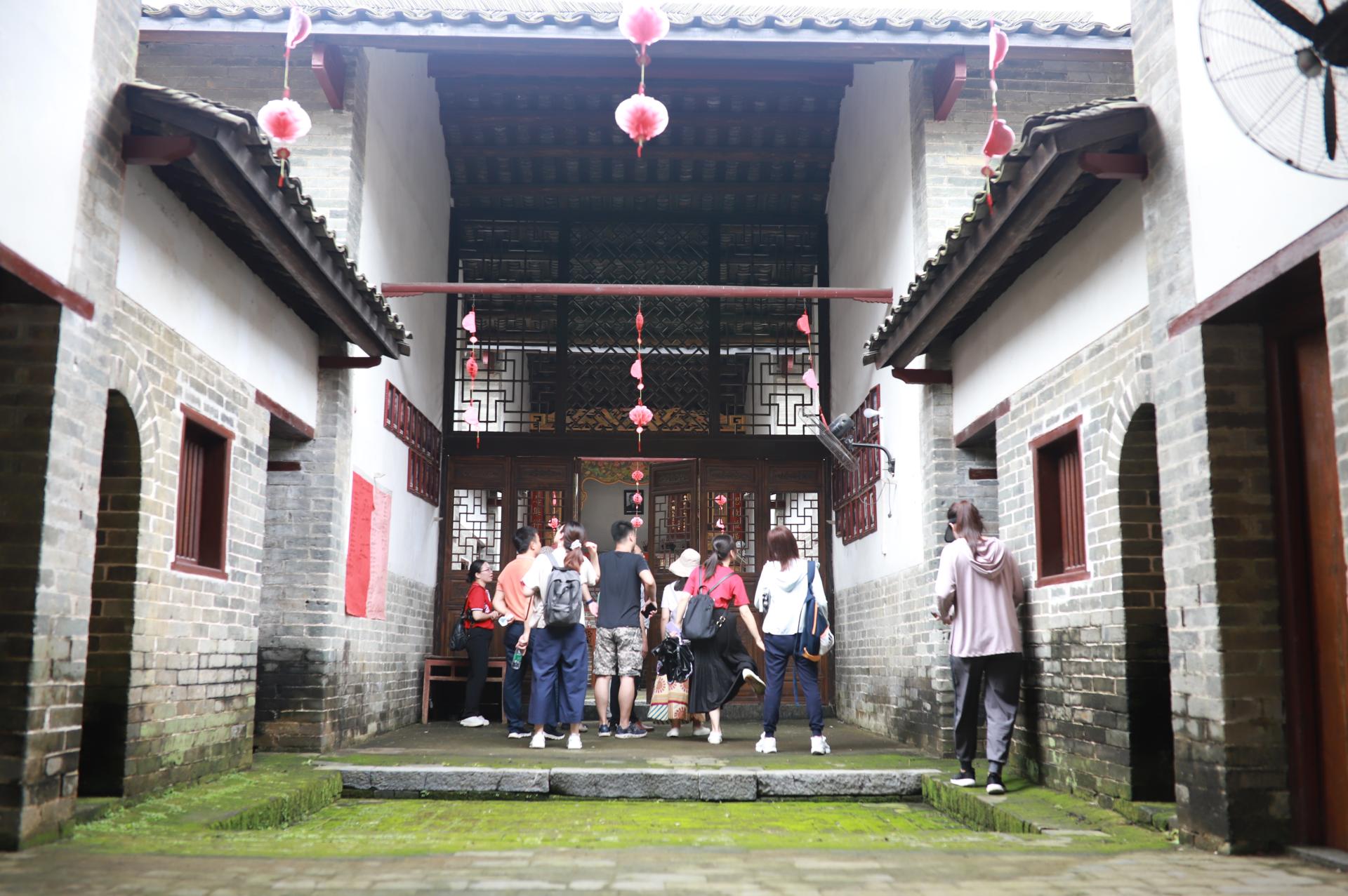 6月7日,调研组赴宾阳,考察蔡氏古宅、磨家大院,感受家族兴衰。蔡氏古宅建筑群,处于宾阳县古辣镇蔡村的中心,古宅群始建于何时已难于考究,最古老的建筑在清代咸丰九年(1859年)毁于兵燹,现存最老的建筑为清代举人蔡凌霄于咸丰九年后重修。蔡氏古宅整座建筑富有艺术性,体现出深厚的文化底蕴,是明清时期岭南民居的典型代表,具有较高的旅游开发和文物保护价值。磨家大院位于武陵镇南面,为清末民初岭南地区典型的砖木结构围屋建筑。磨家大院在网络上的资料不多,从现场的简介牌可以大致看出,该大院之家族曾经非常辉煌,创下不少佳话,然而时过境迁,当年繁华大院如今只是空院一座。