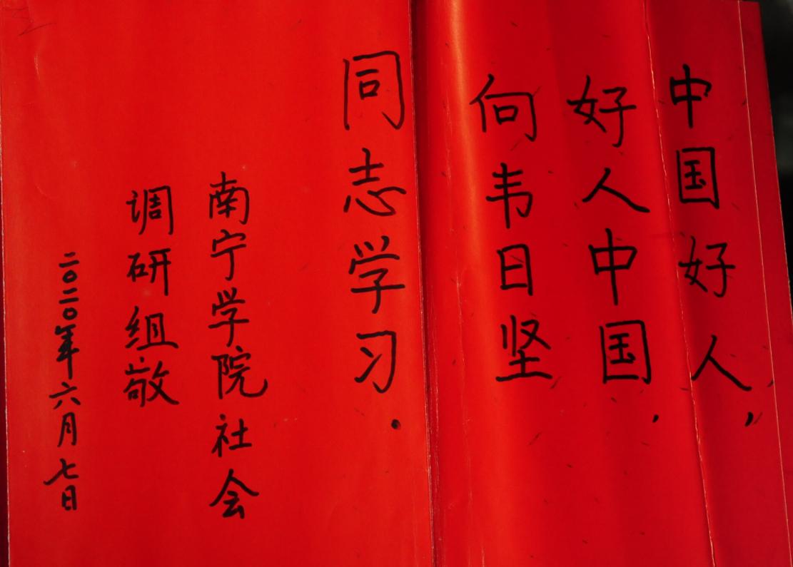 调研组老师写下的敬词,要向韦日坚同志学习