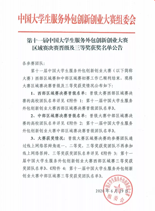 【喜讯】Beat365中文官方网站在第十一届中国大学生服务外包创新创业大赛中荣获晋级