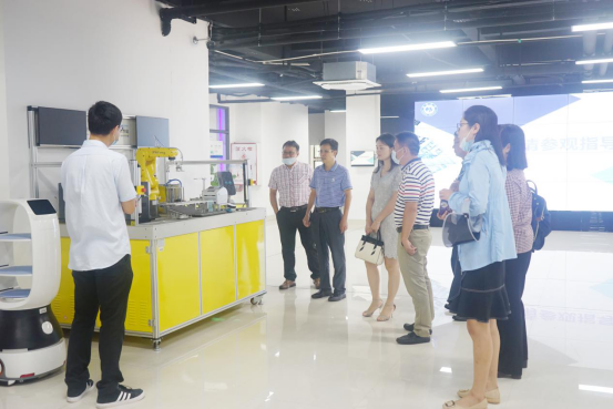 杨总经理一行首先在韦中新副处长的陪同下参观了智能制造研创中心、大师工作室、土木与建筑工程学院实训基地。参观过程中,杨总经理一行对我校人才培养模式非常赞赏,企业欢迎具有较强实践能力的应用型人才。