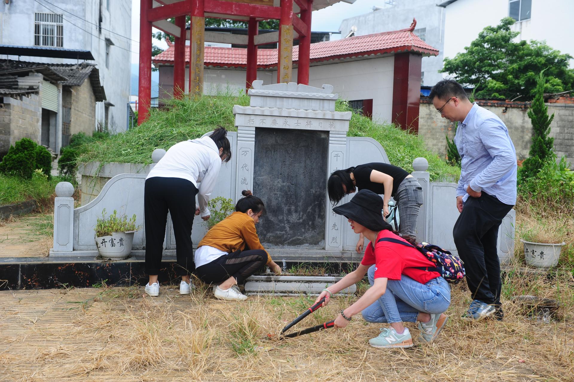 调研组老师为烈士墓扫墓