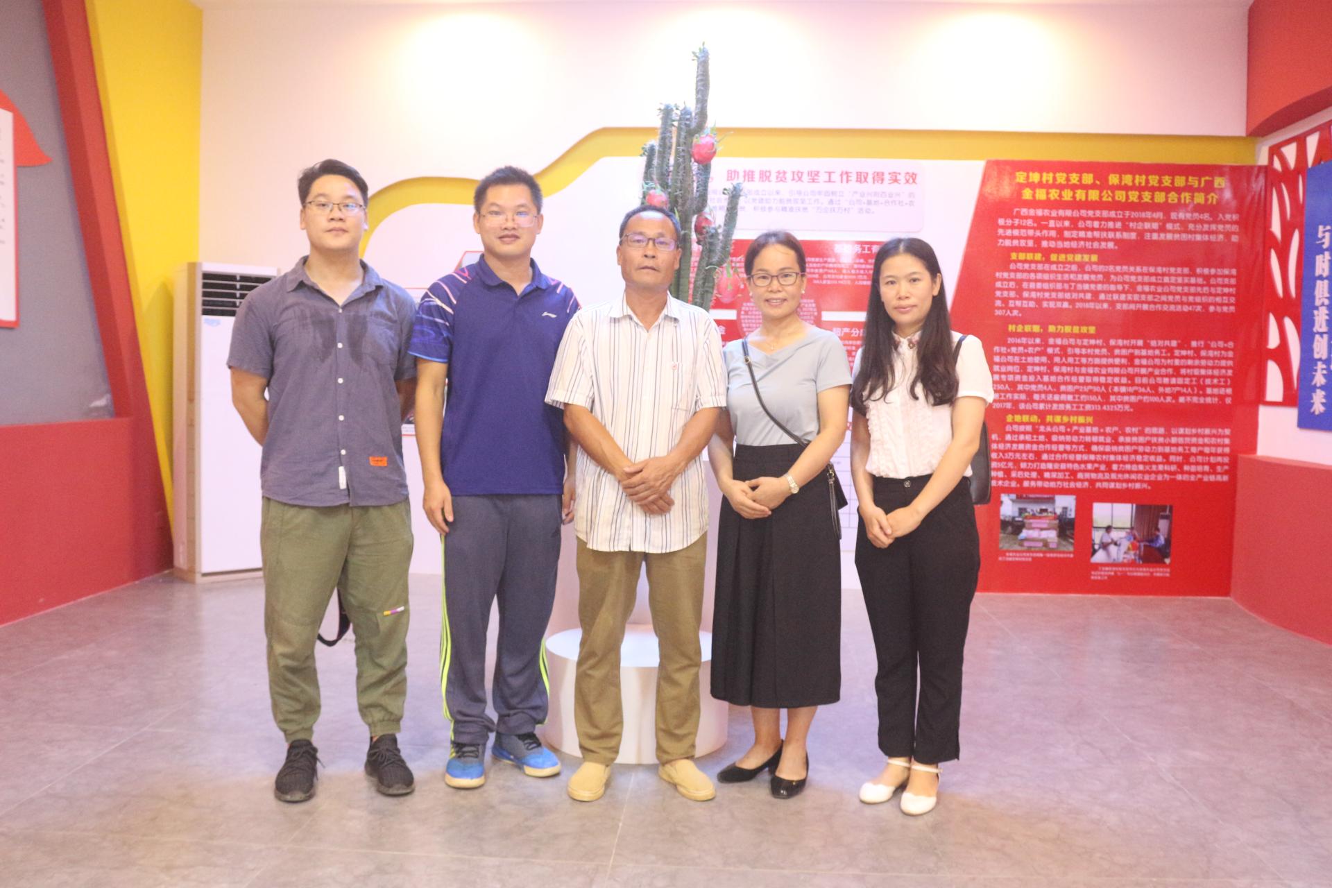 调研组来到广西金福农业有限公司火龙果基地进行调研,基地负责人叶居鸿热情接待杨院长一行,叶厂长带领调研组参观了火龙果种植、种苗培育基地、金福荣誉榜、金福党群服务活动中心、金福星火公益之家,详细介绍了火龙果品种、种苗培育、生长情况、火龙果采摘运送情况、水肥一体化车间运行情况、火龙果分拣车间运行情况以及火龙果冷链库房的运行情况、土地流转情况、村民收入结构、土地经营效益等。调研小组成员深受金福金福星火公益之家感染,调研组希望能与金福星火公益之家共建志愿者服务基地,通过校企合作,帮扶家庭困难的学生,助力贫困生圆求学梦。
