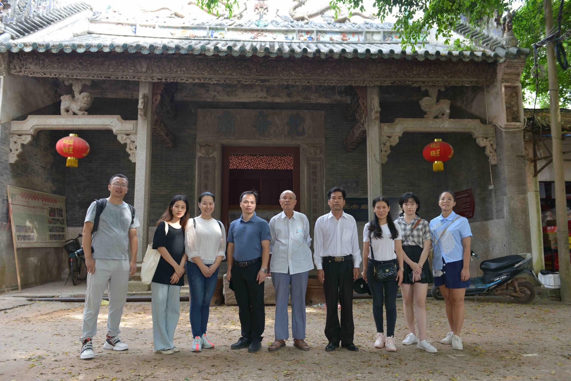 7月18日,《邕宁区传统宗祠建筑文化元素“三维”保护服务》项目主持人蓝志军带领袁国凯、樊原朱、黄彩兰老师及艺术设计学院2017级部分学生到南宁市邕宁区那连镇那连古圩、北帝庙、那连戏台和蒲庙镇五圣宫进行调研。