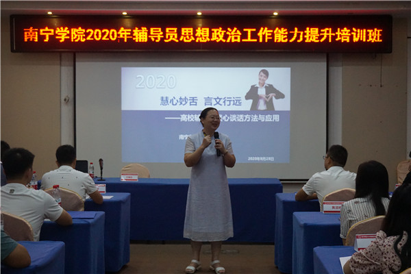 专题报告环节,来自南宁师范大学美术与设计学院党委书记的宁英烈副教授为全体学员作了主题为“高校辅导员谈心谈话方法与运用”的报告,深入浅出地传授了辅导员与学生谈心谈话的方法与技巧;桂林理工大学学生工作部张成龙副研究员结合该校学生党支部的建设实践,就如何开展学生党支部的规范化、标准化建设给出了建设性的意见和建议;南宁师范大学马克思主义学院院长、博士生导师曾令辉教授深刻阐述了辅导员思想政治教育理论发展与方法的运用,不仅具有理论的高度更兼具实践的操作性;广西医科大学党委教师工作部专职副部长林展副教授结合自身长期从事辅导员工作的经验体会,就辅导员如何提升职业幸福感、做好职业规划、实现自身成长作了精辟论述,广大学员获益匪浅。
