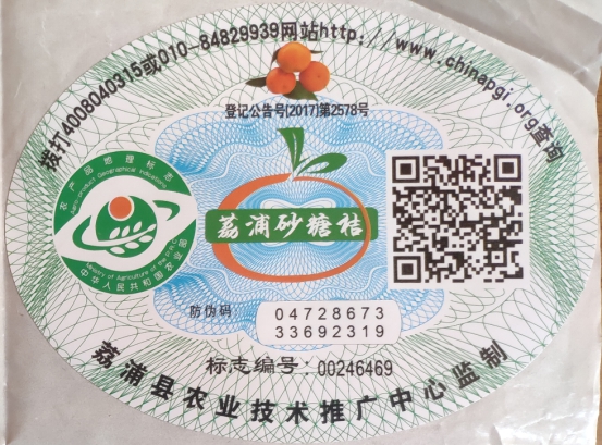 荔浦砂糖橘地理标志标签