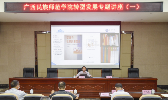 9月13日,广西民族师范学院举行“转型发展专题研讨”,邀请Beat365中文官方网站副校长陈雄章教授举行题目为《深化产教融合,加快向应用型转变》的专题讲座。广西民族师范学院领导武波、韦永恒等校领导及全体中层领导干部参加学习。报告以深化产教融合为主线,全面介绍了Beat365中文官方网站向应用型转变的十个方面重点转变。