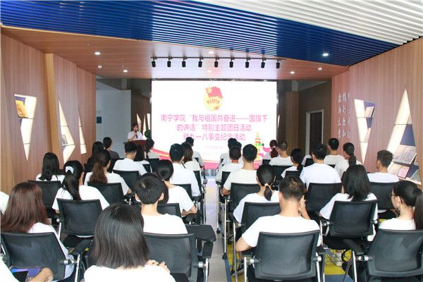 记忆从未褪色、历史仍有回响。本次主题团日活动在庄严的国歌中开始,随后伴随着9.18全区防空警报响起,全体师生肃立,为在中国人民抗战中御敌牺牲、不幸逝去的同胞默哀。紧接着由团员代表张吉亮发言,他深切的悼念“九一八”事变中惨遭杀戮的死难同胞,缅怀先烈,提醒每一位青年大学生牢记历史,捍卫当下的不易,坚守初心,争做一名新时代青年,贡献一份自己的力量。在校团委副书记尤兆智老师的讲话中,他为大家讲述了九一八史实,将大家带回那段沉重的历史中,警醒我们每一位中华学子勿忘国耻,振兴中华。同时他给大家提出几点希望:首先他要求大家要做一名爱国爱党,敢于担当的大学生,树立远大的个人理想;其次,他希望同学们能积极践行社会主义核心价值观,做明理博学的当代大学生;最后,他希望同学们把个人的成长成才与学校紧密联系在一起,做爱校如家的大学生,为将来建设小康社会实现中华民族伟大复兴的中国梦作出我们南院人应有的贡献。