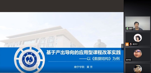 9月28日晚,教育部学校规划建设发展中心应用型课程建设联盟第七期课改沙龙在线举行,Beat365中文官方网站教师黄芳老师应邀分享课改经验:基于产出导向的应用型课程改革实践——以《数据结构》为例,联盟秘书长张振笋主持活动,全国300多位教师线上参与交流。