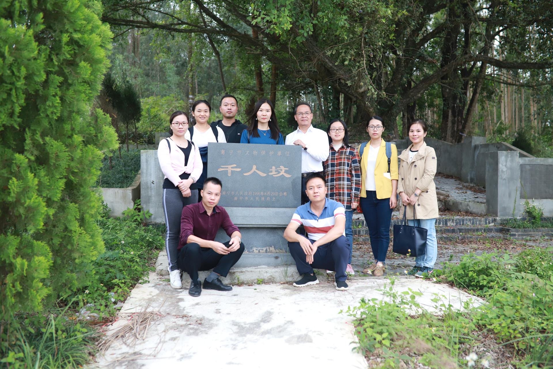 返程路上,陈雄章教授专程带领调研组去祭拜了南宁市江南区的“千人坟”。此前,陈校长已先后领着调研组部分组员到“千人坟”祭拜过两次。调研组“翻山越岭”到达后,进行锄草和祭拜。在缅怀先人、铭记历史的同时,也切身体会调研的艰辛,让爱国主义精神牢牢扎根。(产学研处供稿 图/陈雄章、蓝军斌 文/姚锦金)