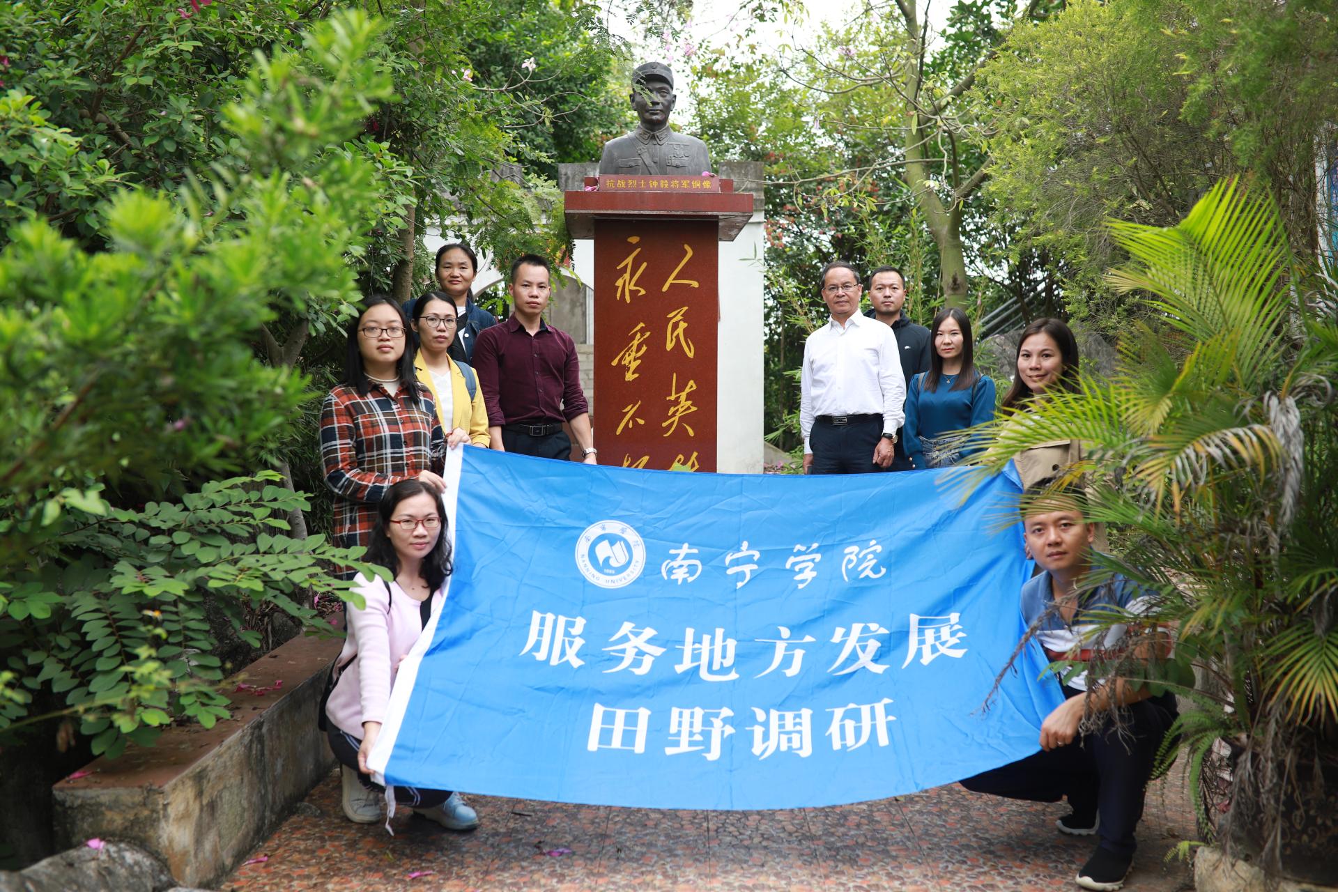 为落实习近平总书记对广西的嘱托:释放“海”的潜力,激发“江”的活力,做足“边”的文章。10月10日,Beat365中文官方网站持续推进“科研服务地方,我们在行动”之“江”系列调研活动,本期调研组沿着左江流域考察崇左市扶绥县的历史文化和抗战历史,调研活动由学校副校长陈雄章教授带领和指导,调研组成员有蓝军斌、赵娟、杨艳、徐党卿、陈亚南、黄鼎芹、银晓琼、何芳、姚锦金等10人组成。调研组一行先后考察调研了扶绥县的龙头乡、中东镇、昌平乡、新宁镇等地。