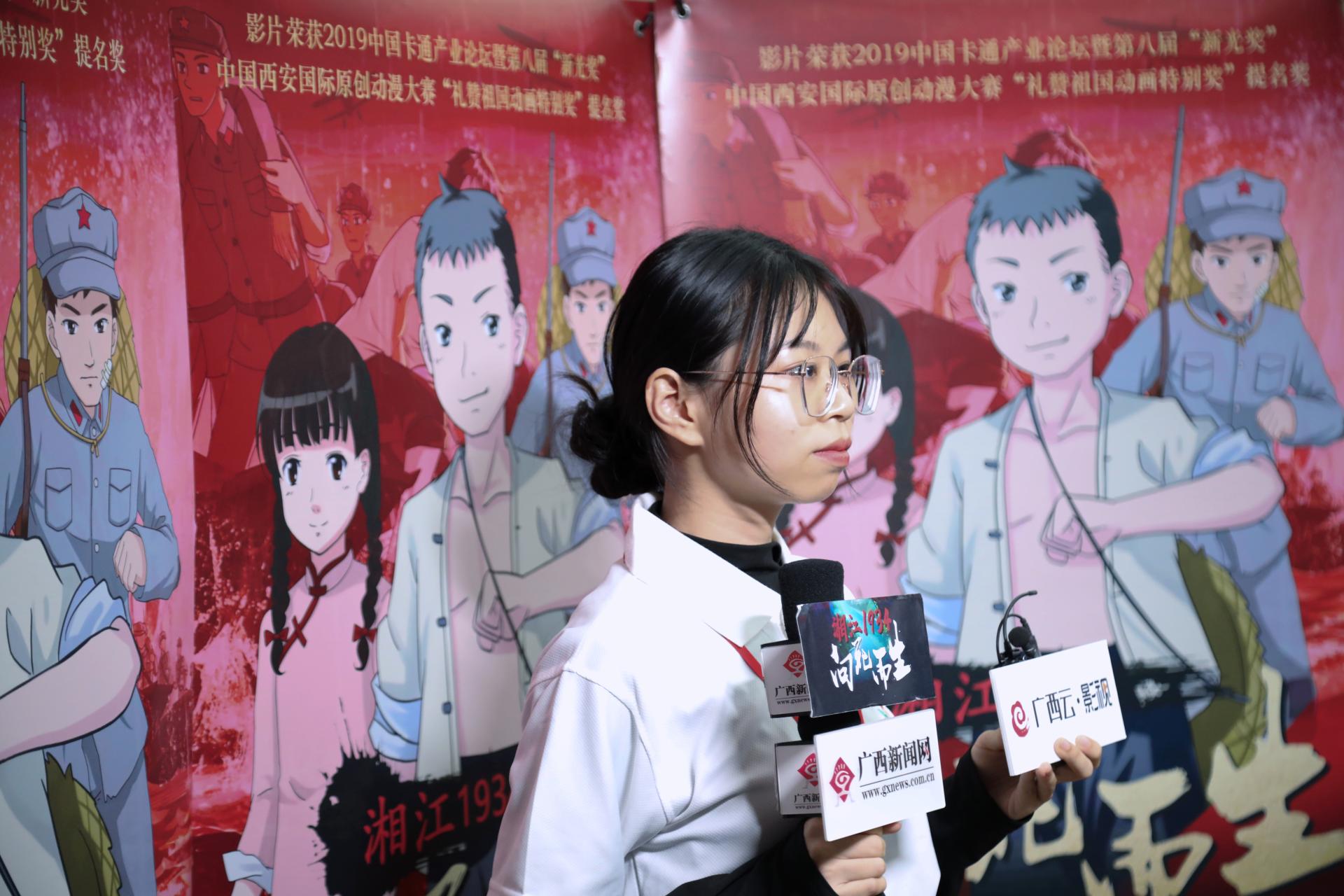 学生党支部党员陈丽妃在接受广西新闻网记者采访