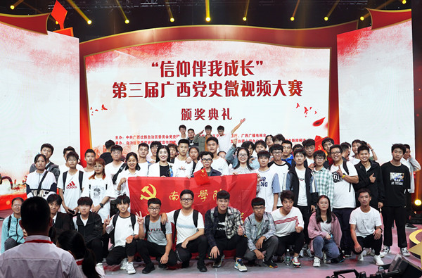 10月28日下午,“信仰伴我成长”——第三届广西党史微视频大赛颁奖仪式于广西广播电视台600平米演播厅隆重举行。学校马克思主义学院选送的作品《奋斗映初心》在本次大赛中获得校园组第一名“银奖”的好成绩。