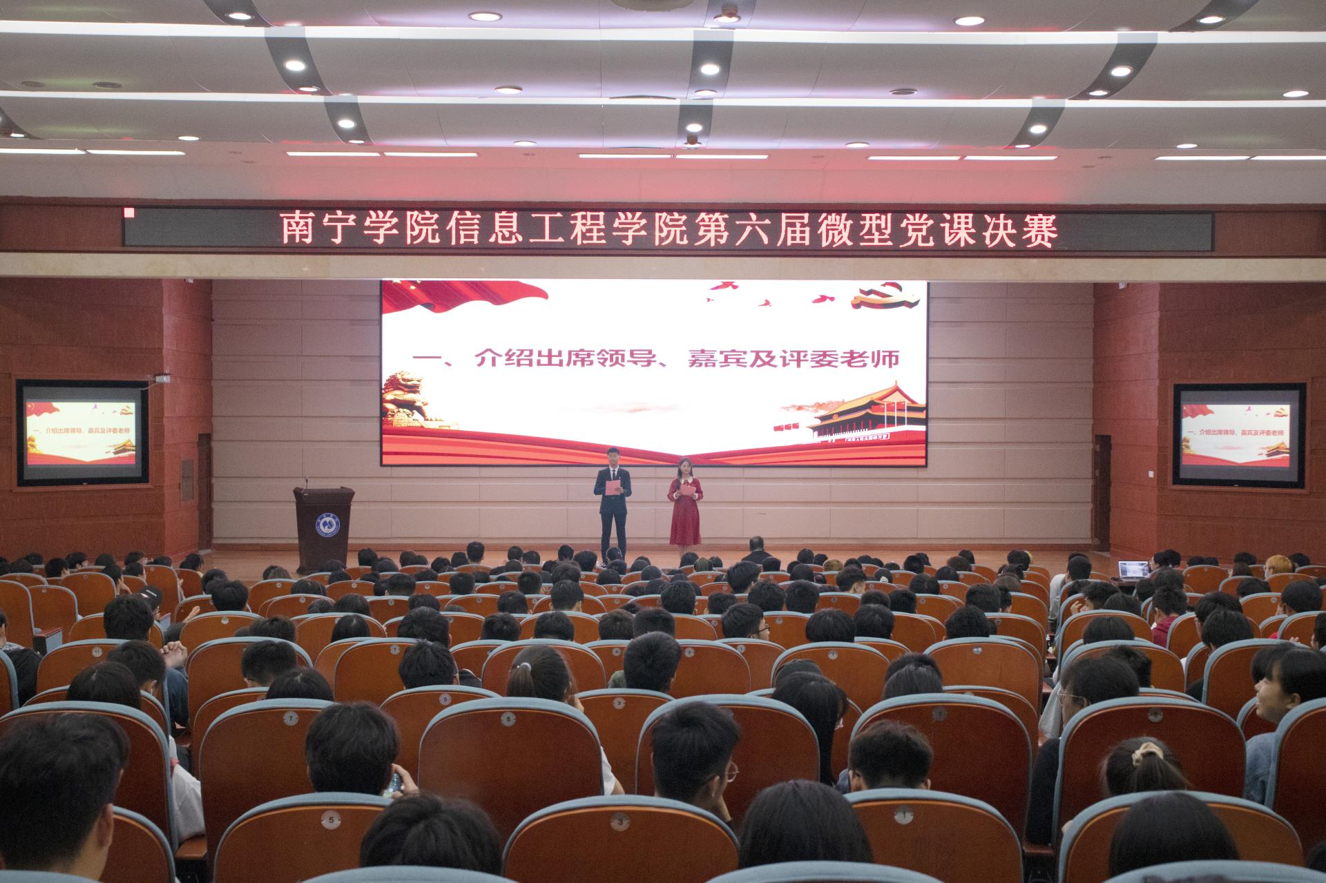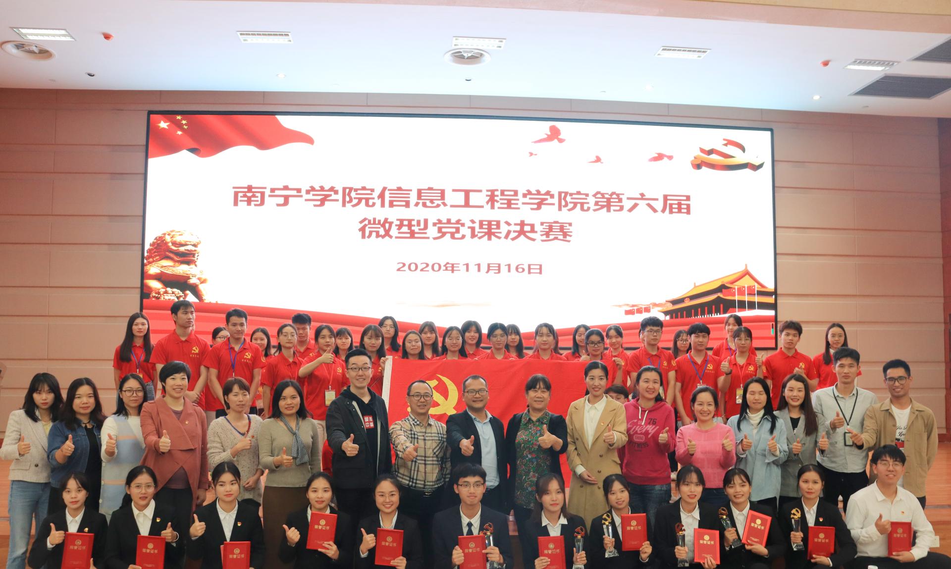 11月16日晚,信息工程学院第六届微型党课比赛决赛在图书馆报告厅举行。信息工程学院党总支阳妮书记、邓斌副书记,学院全体学工老师出席比赛,马克思主义学院董艳副院长、人事处人事科高锦奎科长、马克思主义学院张连云老师、韦爱丽老师以及学校党政办李巧玲老师应邀出席并担任本次比赛评委。学院学生党员、入党积极分子,各班级学生代表500余人到场观摩比赛。