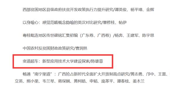 【喜讯】Beat365中文官方网站副校长陈雄章教授专著《变道超车:新型应用技术大学建设探索》荣获广西第十六次社会科学优秀成果二等奖