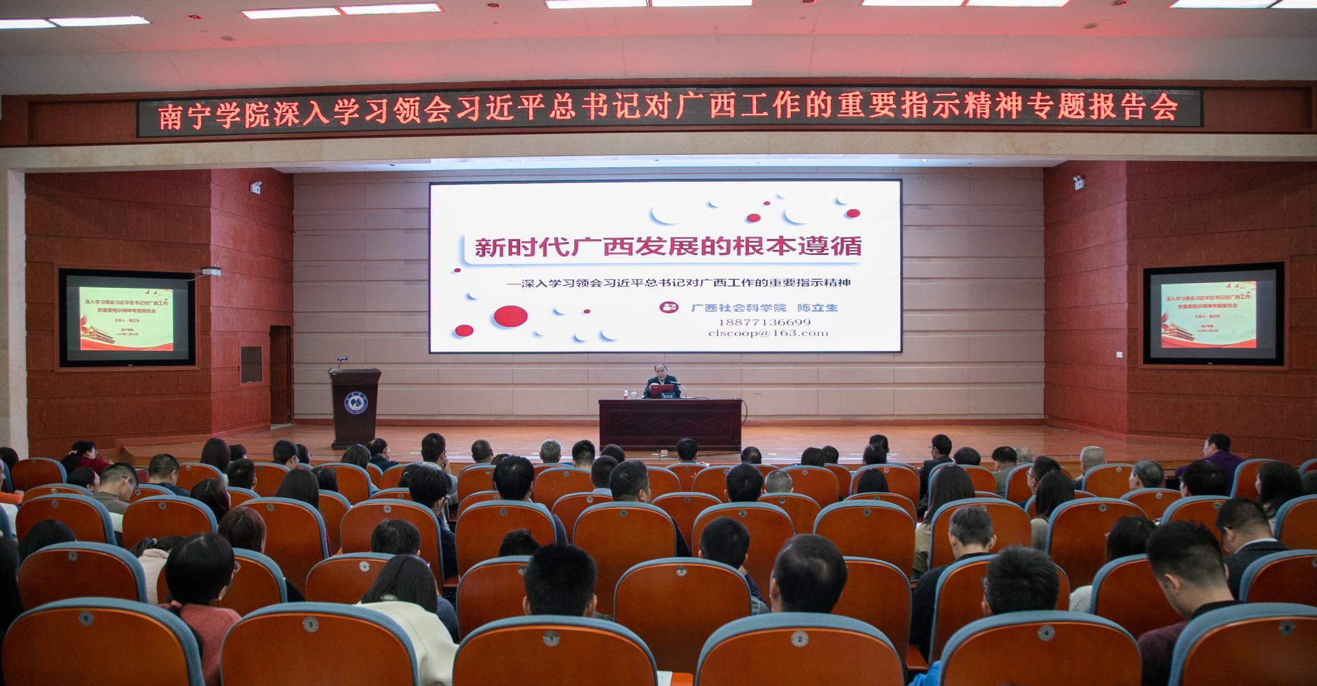 开班仪式结束后进行第一课授课,系列培训班全体学员聆听了广西社会科学院党组书记、院长陈立生作“新时代广西发展的根本遵循——深入学习领会习近平总书记对广西工作的重要指示精神”专题报告会。