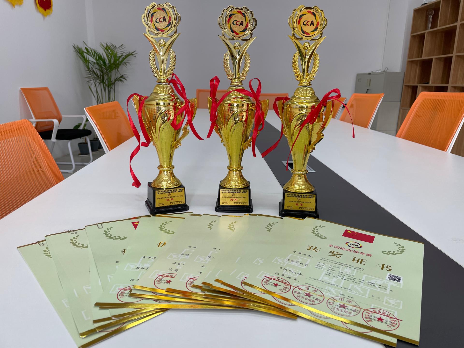 获奖奖杯和奖状