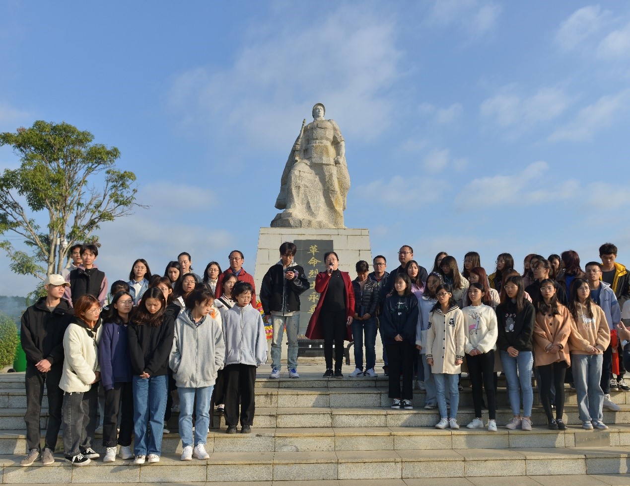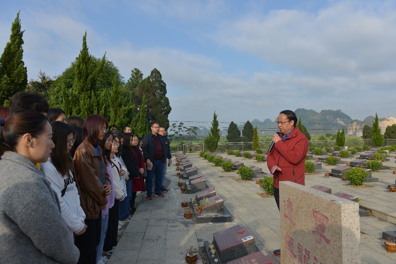 5日上午陈雄章副校长于烈士墓碑前讲述革命烈士事迹