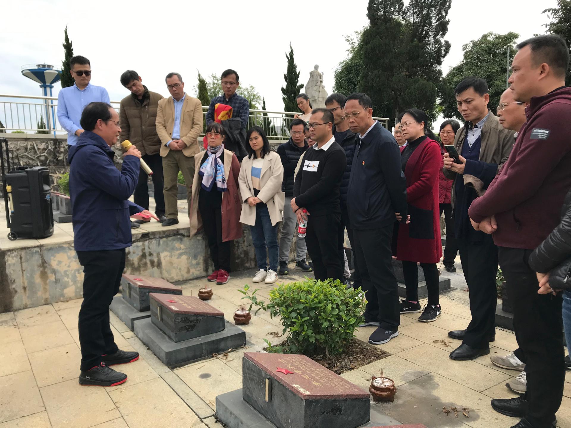 随后,学员们来到龙州烈士陵园缅怀战斗英雄和先烈,向英雄烈士献上花圈并深深鞠躬、默哀。龙州烈士陵园安葬对越自卫反击作战牺牲的烈士,其中有中央军委授予的战斗英雄称号的李定申、朱仁义、王息坤、雷应川、曹保勤。我校副校长、广西知名历史学家陈雄章教授为培训班作现场教学。陈教授为学员逐一深情讲述了英雄们英勇战斗、壮烈牺牲的事迹,大家被英雄们的壮举所深深震撼,向烈士墓鞠躬。学员们还跟随陈雄章教授的脚步参观了铭刻着332位失踪烈士名录的“英名墙”,感悟英雄的浩气凛然。烈士们为了建立新中国和保卫祖国的安宁抛头颅洒热血,献出了宝贵的生命,勇士的精神将与日月同辉,壮士的英名将与天地共存,流芳千古。